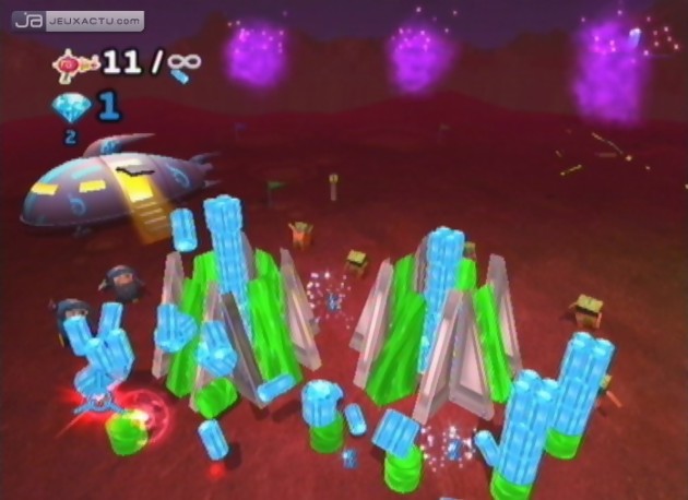 Le concept, à proprement parler, n'enregistre pas d'évolutions, mais les différents éléments qui le composent, si. Boom Blox : Smash Party intègre en effet une série de nouveautés qui raviront les fans du premier opus et les amateurs de challenge. Par exemple, le titre est désormais composé de niveaux aquatiques et spatiaux, nous obligeant à composer avec une physique propre et une inertie totalement différente. Autant dire que le plaisir que l'on tire du jeu est largement renouvelé, d'autant qu'à cela s'ajoute de nouveaux blocs, de nouvelles balles ou encore différentes manières de lancer. Une fois détruit, le Bloc Virus contamine par exemple les cubes adjacents, tandis que la Balle Virus permet d'activer ces mêmes blocs pour répandre une épidémie qui ébranlera la stabilité des différents édifices. Les Boom Bux permettent de leur côté de récolter des médailles nécessaires à l'acquisition de levels inédits, ou de différents composants nécessaires à leur élaboration. En plus de 400 tableaux répartis sur les différents modes de jeu, il est toujours possible de faire un petit tour dans l'éditeur de niveaux. La grosse nouveauté étant qu'il est désormais possible de se les échanger en ligne. Boom Blox : Smash Party dispose d'énormément d'atouts pour séduire tous les publics. Fun, instantané, diablement accrocheur, il propose en plus un intérêt à double détente qui permettra aux joueurs plus casual de grignoter le jeu à petite dose, tandis que les acharnés tenteront de faire péter les scores en décrochant systématiquement une médaille d'or à l'issu d'une partie. Cette volonté d'en offrir à tous se retrouve d'ailleurs dans les différents modes multijoueurs qui offrent une panoplie de variantes particulièrement appréciables. Versus, coop' à deux ou bien à quatre, Boom Blox : Smash Party n'est, en plus, pas du style à exiger plusieurs Wiimote pour se laisser savourer à plusieurs, nombre de mini-jeux étant jouables avec une seule télécommande que l'on doit se faire passer tour à tour. Bref, si l'on excepte un design singulier qui ne plaira pas à tout le monde, l'absence de jeu en ligne, et quelques faiblesses techniques (comme lorsque les nombreuses réactions en chaîne occasionnent quelques ralentissements), on peut dire que Electronic Arts est l'auteur d'une très jolie réussite qui est en mesure de réconcilier toute la famille autour de la Wii.