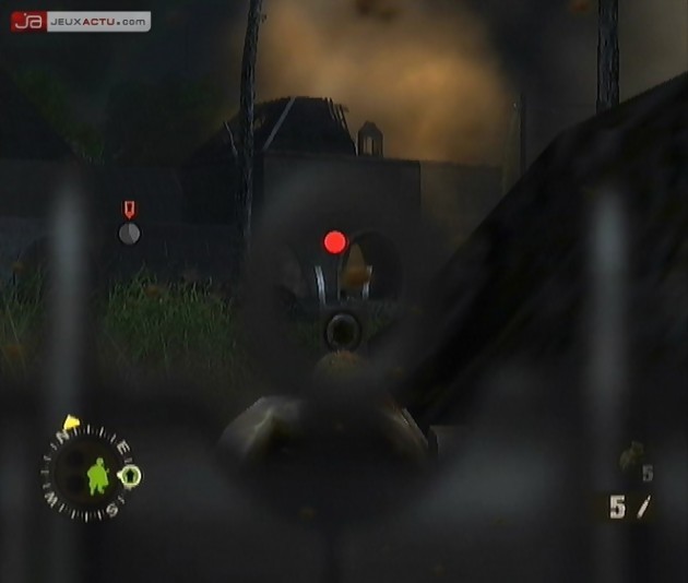 Cela dit le gameplay est suffisamment intuitif pour assigner aux deux équipes un ordre simple même dans le feu de l’action. Chaque injonction s’effectue grâce à la visée que ce soit pour les déplacements ou pour les séquences de tir en bonne et due forme. Cependant, il arrive que la visée se désaxe complètement après avoir validé une consigne. Un petit bug désagréable mais pas alarmant. Les habitués du premier épisode seront donc en terrain connu pour ce qui est de la maniabilité. Les novices en la matière auront besoin d’une petite heure de jeu afin de se familiariser. Dans les deux cas, lorsque la situation est vraiment engluée, il existe la Vue Tactique qui permet d’avoir une vision large du champ bataille, dévoilant les positions des ennemis connues, l’objectif à atteindre et le positionnement de vos troupes. Utile pour construire une tactique d’approche, cette option ne nuit cependant pas à la difficulté du soft bien hiérarchisée allant du « piece of cake » au cauchemardesque durant une même mission. A cela, il faut donc rajouter un système de jeu plus réfléchi nécessitant quelques heures de jeu sur certains niveaux. Et si au bout des 15 chapitres, vous avez toujours envie de plomber du nazi, ou du yankee, on ne sait jamais, il existe le Mode Escarmouches jouable en solo et en coopératif offrant de nouveaux objectifs à atteindre grâce aux Campagnes Alliée et Allemande. Pour finir, un First Person Shooter ne serait pas un vrai FPS sans une option online. Malheureusement absente de la version Playstation 2, elle procure quelques bons moments de jeu jusqu’à 4 participants toujours avec en ligne de mire des missions à remplir.