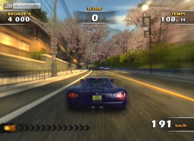 Réaliser ce qui nous est interdit dans la vie de tous les jours, voilà la clef du succès de la série des Burnout. Un titre éloquent pour un concept certainement pas inédit mais que les studios Criterion ont réussi à sublimer. Pour Burnout Dominator, l’utilisation de la jauge de boost a été quelque peu revue et corrigée. S’il était possible d’enquiller plusieurs barres de burnout en fonction des performances réalisées sur la route, il va falloir se montrer plus couillu pour pouvoir en profiter dans ce volet. La jauge de Burnout ne rétrécit ni ne s’agrandit plus en fonction de son pilotage mais selon votre culot à l’utiliser de manière permanente. Pour ce faire, il faut attendre que la barre atteigne son paroxysme, qu’elle passe du jaune au bleu et que le Supercharge soit enclenché. Alors, il sera possible de multiplier les barres de Burnout et de conserver sa vitesse de croisière proche du mur du son, si et seulement si vous maintenant la touche pendant votre conduite. Pas si simple lorsque les concurrents n’hésitent pas à provoquer les accidents ou que les routes se scindent en plusieurs tronçons. Seulement voilà, c’est la meilleure façon de ne pas rester à la traîne car les pilotes adverses ne se font pas prier pour augmenter leur vitesse.