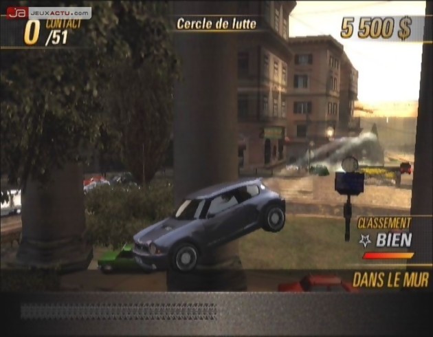 Passée cette déception et une fois des circuits plus complexes débloqués, le charme de Burnout agit de nouveau et on redevient vite tout feu tout flamme. Les courses s’enchaînent, les heures défilent lors de notre tour du monde et les explosions viendront vite illuminer des accidents toujours plus spectaculaires. Le crashbreaker apparu dans le mode Crash de Burnout 3 : Takedown deviendra d’ailleurs disponible en course pour peu qu’il vous reste assez de nitro à carboniser et, au-delà des aftertouch takedowns, ce sont désormais des revanches explosives qui vous permettront d’atomiser jusqu’à cinq véhicules adverses en simultané. Les récompenses pour ce genre d’exploit viendront alors côtoyer les défis régionaux et il faudra compter une bonne vingtaine d’heures pour espérer venir à bout du titre incluant également un tout nouveau mode crash. Très aérien, celui-ci a subi un sérieux lifting et il faudra apprendre à choisir les véhicules les plus efficaces pour chaque épreuve, en prenant en compte leur degré d’explosion mais aussi leur poids pour mieux résister à un vent qui a désormais son rôle. Plus techniques, ces accidents aussi spectaculaires soient-ils restent tout de même au second plan et on préférera écumer les routes sur des circuits qui demanderont pas mal de kilomètres avant d’en connaître tous les secrets..