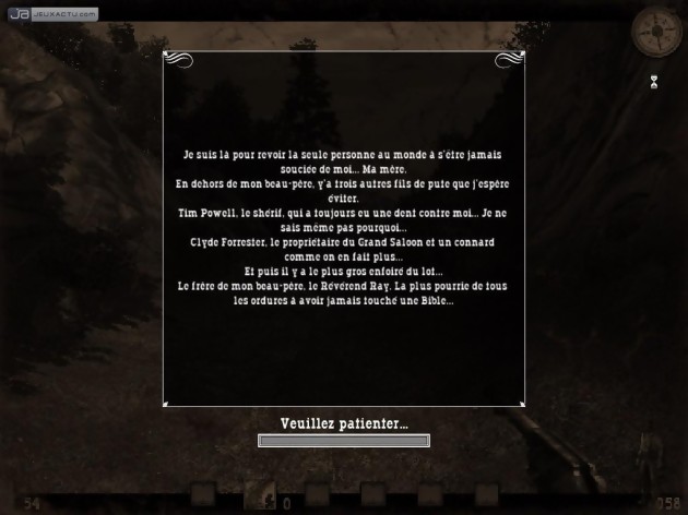 Call of Juarez s’apparente à un exercice de style dans le jeu vidéo. Au cinéma, on a pu voir ce genre de démonstration avec un certain Tarantino dans une des meilleures scènes de Jackie Brown. Tout le monde se souvient du même plan séquence vue par trois personnages différents. Call of Juarez vous permet donc d’incarner le jeune Billy puis le révérend Ray. Billy est un jeune fermier qui a fugué deux ans avant que l’histoire ne commence. Pendant tout ce temps, les indiens ont fait son éducation. Un jour, il songe à revoir sa chère maman et son visage pâle de beau père qui boit un peu trop d’eau de feu avant de lui taper dessus. Au début du jeu, il se rapproche du village. La route est longue, la pente est rude, surtout celle qu’il doit descendre, en manquant 1000 fois de se casser