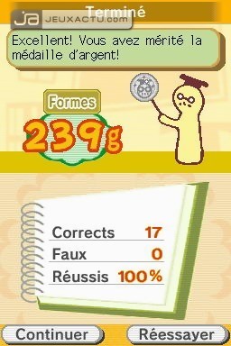 Si le Japon connaît un nouveau phénomène vidéoludique avec Brain Training, More DS Brain Training, DS Brain Training English sur DS et plusieurs titres sur PSP dont je vous évite les titres à rallonge, le triomphe européen de ces jeux de réflexion en est à ses balbutiements. Fort du succès de Programme d'Entraînement Cérébral du Dr. Kawashima : Quel âge a votre cerveau ? qui permet d’évaluer sa rapidité de réflexion, Nintendo enchaîne sans traîner avec Cérébrale Académie connu également sous les appellations Big Brain Academy aux USA et Yawaraka Atama Juku au Japon. Pas question donc de délaisser son cortex cérébral même pendant les vacances d’été. Mais plutôt que de proposer un titre à la réalisation chirurgicalement sobre et aux mini-jeux barbants qui pour sort tout juste d’examens, Nintendo change le concept de ses épreuves pour évoluer le poids de votre cerveau avec une approche beaucoup plus ludique. Désormais, quand on vous traitera de lourd, ce sera un compliment !