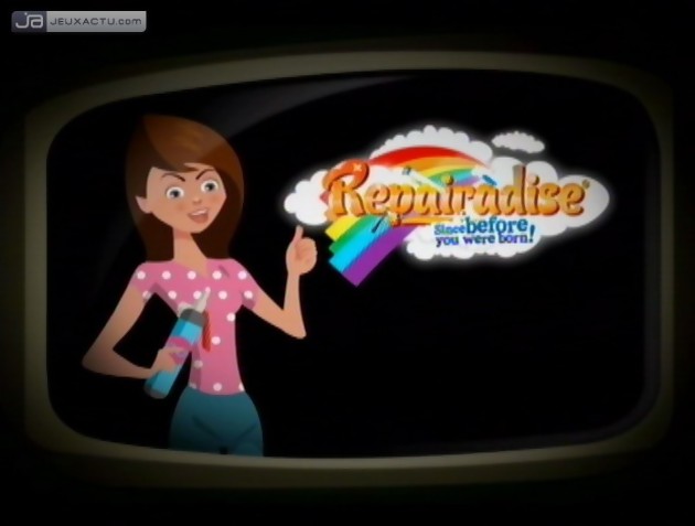 Ca tombe plutôt bien car le titre s’inscrit dans la lignée des jeux familiaux où seule l’utilisation de la Wiimote suffit à provoquer des fous-rires. En théorie seulement, car quand bien même Lexis Numérique s’est creusé la tête pour établir un véritable background avec la famille Stevens, les mini-jeux proposés sont loin d’être épatants. On se retrouve ainsi embringué dans les mésaventures de cette famille un peu loufoque, prise au piège par une machine autonome qui a décidé de foutre le dawa dans la maison. Une machine infernale qui fera même office de big boss à la toute fin du jeu, une fois que l’ensemble des épreuves aura été débloquée. En fait, la carence vient surtout du nombre d’épreuves, 17 au total, ce qui est bien trop faible pour tenter de faire jeu égal avec des pointures telles que Mario Party qui dispose de plus d’une cinquantaine de défis, ou dans une moindre mesure les Lapins Crétins qui peuvent compter sur leur bagout pour faire oublier leur piètre prestation. C’est d’autant plus regrettable car certaines épreuves de Chaos à la Maison ont le mérite d’être assez originaux, comme cette fuite d’eau grandeur nature qui nous oblige à sauver le maximum de meubles de la maison. Le saut à l’élastique où l’on nous demande de catapulter Alex vers le bureau de son père pour récupérer des tubes, ou bien encore Somnambules où l’objectif est d’empêcher les intrus de réveiller les membres de la famille. Toutes ces épreuves font preuve d’originalité et se révèlent également amusants à jouer. Malheureusement, l’euphorie sera de courte durée puisque le reste des mini-jeux manquent sévèrement d’inventivité. Entre les fissures à réparer et les personnages à cibler pour les ensuite les déplacer, on a quasiment fait le tour de la question. Forcément, en n’utilisant uniquement la Wiimote, les mouvements à réaliser devant son téléviseur sont minimes et l’on se retrouve à faire les mêmes gestes tout au long de l’aventure. Qu’importe, celle-ci se montre plutôt brève et il ne vous faudra pas plus de deux heures pour arriver en face du boss et terminer le jeu. Evidemment, tout l’intérêt de Chaos à la Maison réside dans sa replay-value et dans les parties à plusieurs, mais là encore, il faut être sacrément téméraire pour se contenter de si peu de choses.