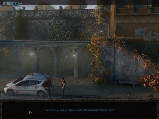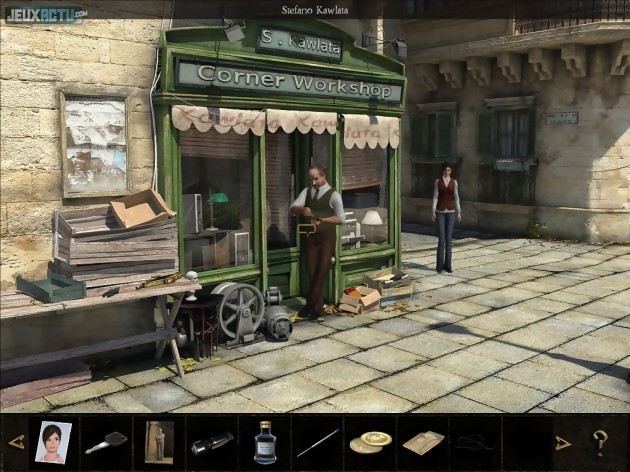 Ainsi, on ne se retrouve jamais vraiment bloqué sans savoir quoi faire. L'héroïne distille souvent de discrètes indications sur les objectifs en cours ou sur les moyens de les accomplir. Et si l'on essaye de quitter un lieu avant d'avoir réalisés toutes les actions nécessaires au bon déroulement de l'aventure, Mademoiselle Leroux ne se contente pas d'un laconique "je ne peux pas encore partir" mais précise ce qu'elle attend de nous. La progression dans le jeu est donc très fluide, d'autant que les situations et les énigmes ne manquent jamais de logique. Parfois, même, elles ne sont pas assez tarabiscotées. Quand on trouve une truelle et un pinceau sur un site de fouilles, ou encore un burin et un marteau à côté d'une caisse fermée par des clous, il n'y a pas vraiment de question à se poser sur leur usage. Heureusement, certaines énigmes demandent tout de même un peu plus de réflexion de la part du joueur. Ceux qui auraient du mal pourront toujours faire appel à la fonction d'affichage des zones importantes, qui commence à devenir quasiment systématique dans les jeux d'aventure mais qui diffère quelque peu ici. En effet, les personnages avec qui l'on peut dialoguer et les zones à regarder ne sont pas indiqués. On pourrait penser que cela complique quelque peu la tâche mais en réalité, c'est l'inverse qui se produit. Premièrement car, de toutes manières, personne ne pourrait louper involontairement un homme ou une femme planté dans le décor. Et puisque cette fonction d'aide n'affiche que les zones interactives, on peut tout à fait parcourir le jeu sans jamais s'arrêter sur les éléments de décor simplement observables. Ce que nous ne vous recommandons pas car la durée de vie de l'aventure est déjà très faible en soi. On dénombre ainsi moins de vingt interlocuteurs dans tout le jeu et guère plus de lieux différents. Pour le coup, il s'agit d'un véritable défaut puisque six heures suffisent largement à boucler le scénario, notamment si vous avez la fâcheuse habitude de lire les sous-titres et donc de zapper les dialogues avant leur fin. Signalons à ce propos qu'il est en revanche impossible de passer les monologues. Lorsque Sylvie décrit un objet ou commente d'elle-même une situation, vous n'avez d'autre choix que de l'écouter jusqu'au bout, même lorsque vous avez déjà entendu la phrase auparavant. Autre petit souci de finition : le jeu est ponctué de scènes cinématiques aussi courtes que disgracieuses, ce qui ne contribue pas à l'élever vers des sommets. Au final, il faut donc se contenter d'un petit jeu d'aventures relativement plaisant, mais jamais enthousiasmant.