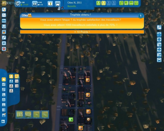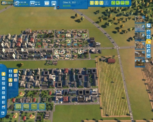 Le cœur du jeu reste tout de même la création de sa propre ville de A à Z. Pour cela, on dispose dorénavant de la possibilité d'installer des rond-points prédéfinis, alors qu'il fallait auparavant les bricoler soi-même. Plus important, les parties sont désormais dotées d'une fonction d'accélération permettant de faire défiler le temps jusqu'à cinq fois plus rapidement que la normale. C'est bien pratique lorsqu'on délimite un grand quartier de maisons ou de bureaux, et qu'il met du temps à se remplir. Quand à la gestion de la fiscalité, elle se voit nettement affinée puisqu'on peut enfin assigner différents taux d'imposition à chaque catégorie de travailleurs ou type d'entreprises. On note également l'apparition de trophées qui, tels des succès Steam, récompensent virtuellement le joueur pour ses bonnes actions, et même ses mauvaises parfois. Un message tonitruant viendra ainsi vous récompenser lorsque vous aurez satisfait 10000 travailleurs qualifiés... tandis qu'un autre saluera le fait d'avoir un budget négatif de -5000 crédits. C'est assez gadget, mais on sait que certains joueurs adorent ce genre de fioritures. Enfin, et surtout, le jeu accueille pour de bon les fameux transports en commun, totalement absents du mode solo de Cities XL et implantés tardivement et partiellement dans l'offre en ligne. On peut dorénavant tracer des lignes de bus ou de métro comme on le souhaite. Il y a certaines limitations (40 arrêts maximum par ligne de bus, 20 stations pour les lignes de métro, impossibilité de créer une station aérienne même s'il reste possible d'avoir un tronçon de ligne hors-sol) mais l'ensemble s'avère plutôt complet et fonctionnel. Et devient même rapidement indispensable pour ne pas surcharger les axes routiers, facilement encombrés dès qu'on atteint un nombre important d'habitants. Plus étonnant encore, les développeurs ont su adapter correctement les fonctionnalités phares de feu l'offre Planète, initialement pensées uniquement pour être jouées en ligne. On retrouve donc une belle planète représentée façon Google Earth à la différence que, cette fois, toutes les villes n'appartiennent qu'à vous. Mais l'interface d'échange de ressources ne passe pas à la trappe pour autant ! Simplement, au lieu de commercer avec d'autres joueurs, vous le ferez avec vos différentes cités ou avec Omnicorp, une société dirigée par l'IA et très rude en affaires. Le principe de spécialiser certaines villes dans certains domaines (agro-alimentaire, eau, managers, vacances, électricité...) afin d'atteindre un équilibre global plutôt que local reste donc d'actualité. Et la durée de vie du jeu s'en trouve décuplée puisqu'on aura tout intérêt à bâtir un maximum de villes afin d'optimiser au mieux les échanges. Terminons par quelques mots sur le bilan technique, assez proche du précédent épisode. On apprécie toujours autant la puissance du zoom, qui permet de passer sans à-coups d'une vue stratosphérique à une vue au ras du sol... quitte à déplorer alors le design cartoon assez inélégant des passants. Et on regrette la gourmandise du jeu, qui rame dès que les villes atteignent une taille importante, ainsi que les problèmes récurrents pour établir certaines routes et zones (on ne comprend pas toujours pourquoi le logiciel nous refuse certains tracés).