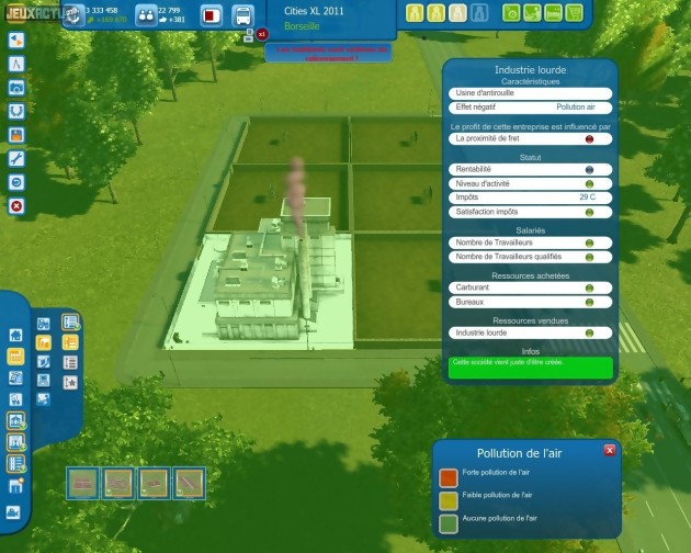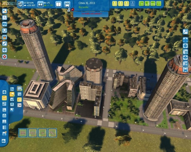 Le cœur du jeu reste tout de même la création de sa propre ville de A à Z. Pour cela, on dispose dorénavant de la possibilité d'installer des rond-points prédéfinis, alors qu'il fallait auparavant les bricoler soi-même. Plus important, les parties sont désormais dotées d'une fonction d'accélération permettant de faire défiler le temps jusqu'à cinq fois plus rapidement que la normale. C'est bien pratique lorsqu'on délimite un grand quartier de maisons ou de bureaux, et qu'il met du temps à se remplir. Quand à la gestion de la fiscalité, elle se voit nettement affinée puisqu'on peut enfin assigner différents taux d'imposition à chaque catégorie de travailleurs ou type d'entreprises. On note également l'apparition de trophées qui, tels des succès Steam, récompensent virtuellement le joueur pour ses bonnes actions, et même ses mauvaises parfois. Un message tonitruant viendra ainsi vous récompenser lorsque vous aurez satisfait 10000 travailleurs qualifiés... tandis qu'un autre saluera le fait d'avoir un budget négatif de -5000 crédits. C'est assez gadget, mais on sait que certains joueurs adorent ce genre de fioritures. Enfin, et surtout, le jeu accueille pour de bon les fameux transports en commun, totalement absents du mode solo de Cities XL et implantés tardivement et partiellement dans l'offre en ligne. On peut dorénavant tracer des lignes de bus ou de métro comme on le souhaite. Il y a certaines limitations (40 arrêts maximum par ligne de bus, 20 stations pour les lignes de métro, impossibilité de créer une station aérienne même s'il reste possible d'avoir un tronçon de ligne hors-sol) mais l'ensemble s'avère plutôt complet et fonctionnel. Et devient même rapidement indispensable pour ne pas surcharger les axes routiers, facilement encombrés dès qu'on atteint un nombre important d'habitants. Plus étonnant encore, les développeurs ont su adapter correctement les fonctionnalités phares de feu l'offre Planète, initialement pensées uniquement pour être jouées en ligne. On retrouve donc une belle planète représentée façon Google Earth à la différence que, cette fois, toutes les villes n'appartiennent qu'à vous. Mais l'interface d'échange de ressources ne passe pas à la trappe pour autant ! Simplement, au lieu de commercer avec d'autres joueurs, vous le ferez avec vos différentes cités ou avec Omnicorp, une société dirigée par l'IA et très rude en affaires. Le principe de spécialiser certaines villes dans certains domaines (agro-alimentaire, eau, managers, vacances, électricité...) afin d'atteindre un équilibre global plutôt que local reste donc d'actualité. Et la durée de vie du jeu s'en trouve décuplée puisqu'on aura tout intérêt à bâtir un maximum de villes afin d'optimiser au mieux les échanges. Terminons par quelques mots sur le bilan technique, assez proche du précédent épisode. On apprécie toujours autant la puissance du zoom, qui permet de passer sans à-coups d'une vue stratosphérique à une vue au ras du sol... quitte à déplorer alors le design cartoon assez inélégant des passants. Et on regrette la gourmandise du jeu, qui rame dès que les villes atteignent une taille importante, ainsi que les problèmes récurrents pour établir certaines routes et zones (on ne comprend pas toujours pourquoi le logiciel nous refuse certains tracés).