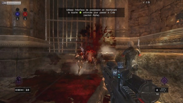 Clive Barker's Jericho, c'est avant tout une ambiance, un univers. Les décors ont beau se situer à des époques différentes (on se retrouve en pleine Seconde Guerre Mondiale, à Rome, au Moyen-Age...), ils ont tous un point commun : c'est sombre, plein de sang et d'horreurs en tous genres. Il n'est pas rare de croiser un cadavre empallé et dépecé ou de gigantesques mares de sang. Attention aux âmes sensibles, donc ! Les créatures peuplant le jeu ne sont pas en reste, entre des gargouilles géantes, des momies pas très bien embaumées, des aberrations biologiques... Certaines sont faciles à dézinguer, d'autres demandent un peu plus d'efforts comme celles qui explosent après leur avoir percé quelques pustules. L'autre atout de Clive Barker's Jericho, c'est incontestablement son système de possession. En effet, peu après le début, le héros principal meurt (pas de panique, à ce stade, ce n'est pas un spoiler !) et se trouve capable de posséder le corps de ses six équipiers. Joli prétexte (on préfère éviter de penser qu'il s'agit d'une métaphore !) pour nous permettre de contrôler tous les membres de l'équipe, chacun possédant ses armes et ses pouvoirs paranormaux. En vrac, vous pourrez incendier des ennemis, les paralyser, ralentir le temps, incarner un ennemi un court moment, suivre et guider une balle pour tirer avec précision, déplacer des objets à distance... Quant aux armes, vous n'en trouvez nulle part sur le terrain, il faudra faire avec celles de base : mitrailleuse lourde, pistolet, fusil sniper, katana... Pour les munitions, pas de souci, elles sont abondantes et vous serez régulièrement ravitaillé. Vous l'avez compris, il faut donc régulièrement passer d'un membre à l'autre selon l'équipement et le pouvoir dont vous avez besoin. Enfin, la mort n'est plus une fatalité ! En effet, si vous mourez, il suffit de passer dans le corps d'un autre et venir vous ressusciter ! Vous devrez souvent faire de même pour vos amis morts au combat. Mais prenez gare à ne pas être le dernier à tomber, là, le Game Over est inévitable...