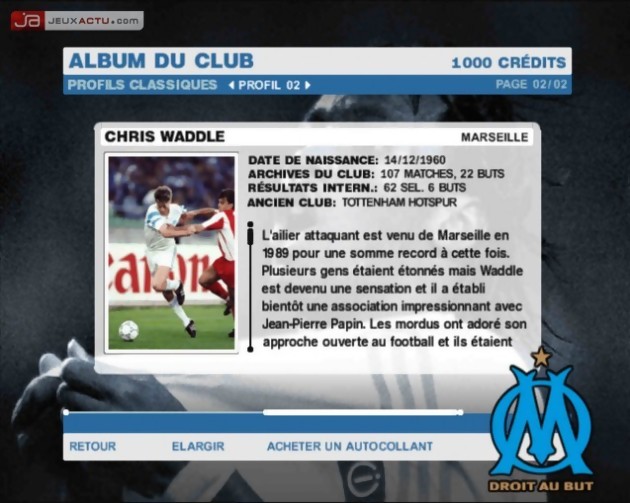 Un dernier mode de jeu est disponible dans le menu club, il s’agit du mode « Scénarios ». Six scénarios sont disponibles, relatant des matchs « héroïques » de votre club. Pour Marseille, on vous propose ainsi de revivre Rennes-Marseille de la saison 2003-2004, où, menés 4-3 à un quart d’heure de la fin, vous devez aider l’OM à revenir au score. Enfin, ça, il faut le deviner. Car les traductions semblent avoir été faites par Babelfish ou le système de traduction de Voila. Puisque c’est vous, voici mots pour mots l’énoncé du scénario Bastia – M’Slle (c’est écrit comme ça dans le texte, même pas capable d’écrire Marseille en entier) : « SC Bastia a stupéfié Olympique Marseille quand il est allé 4-0 en tête après 55 minutes dans cette rencontre de