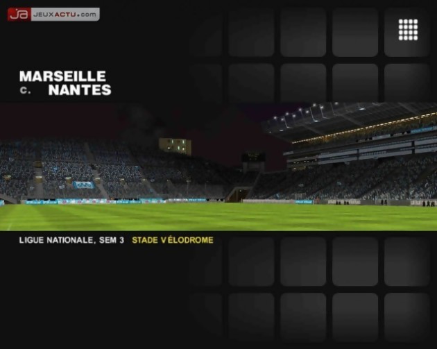 Par bonheur, la version que nous avons pu tester était la version estampillée Olympique de Marseille. S’il avait fallu tester la version PSG, je ne vous aurais pas garanti la totale impartialité de ce test. Tout commence par un petit clip plutôt sympathique, où l’on voit des images de la ville, du stade, des supporteurs et des stadiers qui font la fête tous ensemble (sûrement après un but de Drogba la saison dernière). Ensuite, on se retrouve sur une page d’accueil aux couleurs du club (ici l’OM donc), avec un joueur, choisi aléatoirement dans l’effectif, qui jongle maladroitement à côté des menus. Outre le mode Exhibition, qui vous permet de faire des matchs amicaux avec n’importe quelle équipe, tout l’intérêt, aussi minime soit-il, réside dans le mode « Menu Club ». Vous aurez ici le choix de participer au championnat national ou au trophée européen, sorte de mini ligue des champions avec deux groupes de six équipes, où les deux premiers de chaque groupe se retrouvent en demi finale.