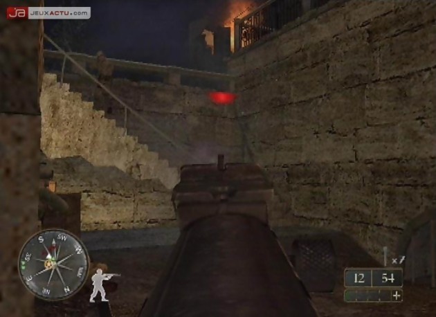 Les objectifs, sans non plus être transcendants, arrivent toujours à nous proposer quelque chose d’intéressant à faire, comme aller chercher un toubib pour sauver la vie de son sergent en chef, de tenir une position attendant que les renforts blindés n’interviennent ou bien encore se débarrasser d’un tireur embusqué, planqué en haut d’un clocher. Là encore, le manque d’intensité ne parvient jamais à plonger le joueur dans l’horreur de la guerre. Pire encore, les lacunes techniques du jeu démontrent à quel point les scènes scriptées mal agencées peuvent devenir rapidement ridicules. Car dans Call of Duty 2 : Big Red One, il ne sera pas rare de se retrouver en face d’événements qui prendront 30 secondes de trop pour se déclencher, laissant le temps au joueur d’apercevoir l’envers du décor. De même, si par malheur, il arrivait qu’on n’entende pas le commandement d’un supérieur en plein combat sous le feu nourri de l’ennemi, celui-ci ne se chargera pas de nous rappeler à l’ordre. Le joueur peut ainsi attendre éternellement avant de déclencher l’événement demandé. Comme vous vous en doutez, nous ne sommes pas partisans des FPS à la liberté totale et suivre bêtement un chemin tout tracé, dans la mesure où celui-ci est bien mis en scène, ne nous dérange pas le moins du monde. En revanche, être sanctionné par un "Game Over" pour avoir tardé à rejoindre sa compagnie le temps de récupérer quelques munitions sur les cadavres des ennemis, est tout simplement intolérable et témoigne d’une erreur avérée de game design. C’est d’autant plus grave puisqu’on se retrouve obligé de reprendre la partie au dernier checkpoint. Irritant.