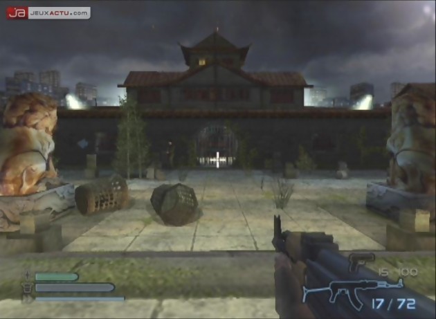 Plus que jamais, la guerre de l’information fait rage. Membre d’une organisation de services secrets, vous voilà capturé lors d’une escapade en Chine et vos hôtes comptent bien vous faire cracher le morceau. Après une scène de torture expliquant la recommandation déconseillée aux moins de 18 ans, vous voilà confiné dans une cellule et devenu “personne”, vos employeurs ayant effacé toutes traces de votre existence. Autrement dit : vous êtes mal barré. Cela est sans compter le soutien de votre amie et collègue Kim, venue vous sortir de là. Vous commencez par reprendre vos esprits auprès de la belle asiatique, et le jeu commence alors à montrer ses qualités. Tout d’abord, vous n’aurez pas à aller dans les menus pour configurer votre visée puisque le jeu va détecter automatiquement, en vous faisant suivre une lumière, si vous jouez en axe inversé ou non. Une idée astucieuse qu’on aimerait voir plus souvent. Ensuite, c’est le moteur physique qui étonne. Comme dans Half-Life 2, chaque objet peut se déplacer, se jeter, mais surtout vous pourrez renverser un lit ou un meuble pour vous en servir comme couverture dans les fusillades. Enfin, vous disposez en permanence d’une trousse de soins vous permettant de vous soigner à tout moment. Si celle-ci est illimitée, son utilisation vous ralentira sérieusement, et il faudra alors l’utiliser à couvert. Une fois ces bases et votre première arme en main, vous voilà prêt à trucider du garde pour vous échapper de votre prison.