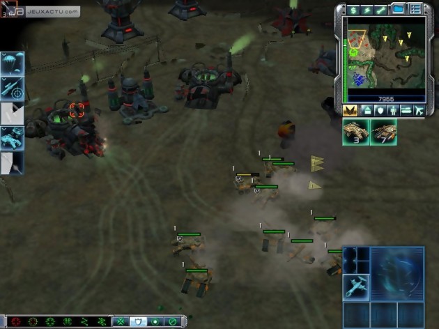 Globalement, la difficulté de la campagne est bien dosée même si certaines missions comme la Croatie mettent à mal bon nombre de joueurs. Si sur le fond, Command & Conquer 3 : Les Guerres du Tiberium ne semble pas avoir évolué d’un iota, certains changements subtils l’ont quelque peu transformé à commencer par la durée des parties. Dans la large majorité des cas, elles oscillent entre 15 et 30 minutes. Cela n’enlève rien à leur intensité, bien au contraire, puisqu’une bataille ne durera que rarement jusqu’à l’épuisement des ressources sur la carte. S'il ne faut pas nécessairement être un épileptique de la souris pour l’emporter, c’est un vrai paradis pour les rushers et EA voulait faire de son jeu une plate-forme de compétition. Si cette caractéristique est peu habituelle, elle s’impose comme un atout indispensable pour les casual gamers. C’est vraiment agréable de se lancer dans une partie entre deux activités sans nécessairement avoir plusieurs heures à consacrer à une partie. Paradoxalement, on peut définir cet opus comme une sorte de retour aux sources. Pour contenter les nombreux fans, Command & Conquer 3 : Les Guerres du Tiberium reste un jeu de stratégie très classique et peu de choses ont évolué. Les habitués reprendront très rapidement leur marque et la prise en main est instinctive pour les néophytes. En effet, l’interface est suffisamment ergonomique pour qu’on s’y retrouve de suite et il faut avouer que les mécanismes de jeu n’ont rien de bien compliqué en soi. On construit sa base en deux temps trois mouvements, on l’alimente par plusieurs centrales électriques, on la renforce par quelques structures de défense ou d’upgrade technologique puis on ne s’en occupe plus vraiment par la suite. Le recrutement de son armée est tout aussi simplifié puisque l’on peut programmer la production jusqu’à une quarantaine d’unités en file d’attente. On est donc tranquille de ce côté-là et on peut se concentrer pleinement sur les combats. A ce sujet, la micro-gestion est limitée, peut-être même trop. Par exemple, il est impossible de définir un itinéraire pour une unité.