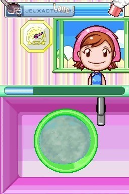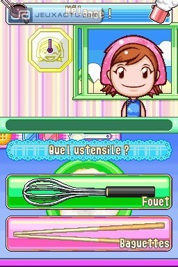 Parmi les nouveautés de la cartouche, on note l’introduction de différents modes de jeu, quatre au total si on fait abstraction de la rubrique "Album" et des "Options". Dans le mode "Cuisine avec Mama", vous devez réaliser des plats cuisinés à l’aide de Mama, toujours fringante avec son bandana rose et son accent anglo-japonais d’une rare drôlerie. Elle n’a pas changé et s’émoustille toujours avec autant de ferveur dès lors qu’on parvient à suivre ses instructions. Toujours aussi laxiste, elle ne manquera jamais de vous féliciter même si on a renversé toute la garniture par terre. Néanmoins, à la fin de chaque recette, Mama attribue des médailles en fonction des actions réalisées au préalable. Dans le mode "Cuisinons !" on cuisine pour ses amis qui, eux, n’hésiteront pas à juger vos plats basés sur le goût (déterminé par la manière dont les plats ont été préparés). Le joueur a le choix de son cuistot et pour commencer seules Mama et Chika sont accessibles. Mais très vite, il est possible de débloquer de nouveaux personnages et même de les personnaliser grâce à la partie "Changer le style" prévu à cet effet. Que ce soit la tenue vestimentaire, les accessoires, les ustensiles ou bien encore la cuisine, chacun peut y apporter sa touche personnelle. Reste alors le mode "Compétition culinaire", certainement la grande nouveauté de cette suite. Il s’agit en effet d’un mode multijoueur, disponible en game sharing et qui propose de lancer des défis à ses amis pour savoir celui qui réalise le meilleur plat cuisiné en un temps record. Plutôt sympathique, tout comme l’ensemble du jeu, fidèle à ses origines et qui devrait à nouveau séduire les amoureux de la dînette virtuelle.