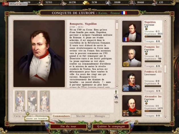 Après un premier opus surprenant mais affichant tout de même une 3D en demi-teinte, il était temps pour Cossacks de passer à la vitesse supérieure. Si Cossacks II conviendra aux amateurs de STR, le bilan reste néanmoins mitigé. Mais avant de tirer nos conclusions, commençons par le commencement. Lors de la création de votre profil, il faudra sélectionner l’avatar de votre choix parmi les souverains et maréchaux (Français, Russes, Anglais, Prussien, Autrichien ou encore Egyptien) les plus influents de leur époque. Chaque personnage est assorti d’une biographie bien fournie et la modélisation des batailles historiques réelles soutiennent la cause ludique des jeux vidéo : on peut apprendre tout en s’amusant. Le mode Campagne, généralement le mode principal de tout jeu de stratégie qui se respecte, attire donc logiquement notre attention mais nous a finalement déçu, la faute à une durée de vie faiblarde. Sur fond de conspiration se déroulant en Angleterre, Cossacks II a au moins le mérite de nous apprendre toutes les commandes et les tactiques de base à travers huit petites missions, dont deux didacticiels. De plus, les ennemis manquent clairement d’intelligence et il ne faudra pas hésiter à programmer directement le jeu dans la difficulté supérieure pour ne pas le terminer trop rapidement. On préférera presque le mode "Conquête de l’Europe", la grande nouveauté de l’épisode.