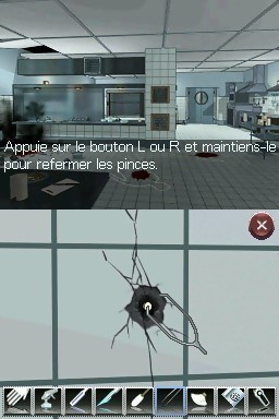 Première déception : les différents lieux à observer se limitent à des plans fixes sur des bouts de pièce. Impossible de se déplacer dans un environnement 3D comme c'était le cas dans Unsolved Crimes. Du coup, comme dans un bon vieux point & click des familles, on fera glisser le stylet un peu partout sur l'écran jusqu'à ce qu'il change de forme, synonyme d'objet à ramasser ou à observer. C'est alors que Criminology dévoile ses charmes. Lorsque vous aurez le nez posé sur un corps ou un bibelot, vous aurez le choix entre plusieurs actions : ramasser, découper au scalpel, retirer à l'aide d'une pince à épiler, relever les empreintes avec un pinceau, observer à la lampe UV ou encore badigeonner de spray bleu pour découvrir des taches cachées. Une fois un indice récolté, direction le labo, pour des analyses au microscope, des comparaisons balistiques ou encore des observations d'ADN. Ces deux phases de jeu (récupération et observation des indices) représentent le gros de Criminology, sorte de mini-games tirant parti des nombreuses actions possibles avec le stylet de la DS (frotter, déplacer, pointe...). Gros point fort du jeu : ces petites épreuves se montrent assez plaisantes. Mais on regrettera tout de même deux choses qui ont leur importance : leur répétitivité (mais en même temps, c'est ça aussi le boulot d'inspecteur) et le manque de précision du stylet, ce qui est beaucoup plus gênant. On pense par exemple aux découpages au scalpel, qui demandent vraiment une énorme précision. Et comme vous serez peu aidé au début du jeu (pas de tutoriel), les premières minutes d'enquête n'en seront que plus crispantes.