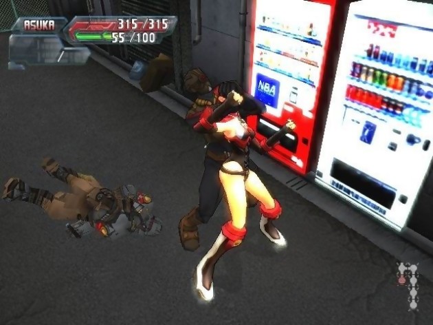 Dream Factory et Spike, les développeurs de ce beat’em all exclusif à la PlayStation 2, nous plongent admirablement bien dans l’univers SF de Crimson Tears, et n’ont pas à rougir face à un Metal Gear Solid à ce niveau-là. Pourquoi diable une telle comparaison ?! Le découpage scénaristique et les musiques qui accompagnent les cut-scenes sont assez proches de la saga d’Hideo Kojima. Ainsi donc on découvre au fur et à mesure de notre progression pourquoi le chaos règne sur Tokyo après l’explosion d’un building A.R.M.A. La firme A.R.M.A est le plus gros fabriquant d’armes biologiques de la capitale. Visuellement, il s’agit d’êtres humains à ceci près que leur ADN a été modifié afin d’améliorer leurs compétences, afin d’en faire des véritables machines de guerre. Mais à force de créer des soldats nouvelle génération, A.R.M.A se retrouve débordé et doit créer trois prototypes humanoïdes pour enrayer une subite mutinerie. Et à la manière de Final Fight ou Fighting Force, il faudra choisir parmi ces trois protagonistes et, galanterie oblige, on commencera par les dames. La première se prénomme Amber. Habile avec les armes blanches, elle excelle tout particulièrement dans les combats à deux épées. On retrouve ensuite Kadie, une jolie rouquine de 16 ans. C’est la plus polyvalente des personnages, puisqu’elle manie aussi bien les lames, que les flingues ou les bombes. Malheureusement, elle ne peut bloquer les attaques ennemies ce qui la rend particulièrement vulnérable. Pour conclure, il y a bien évidemment le beau gosse de service : Tokio, l’expert en armes à feu. Mais il faut les voir avant tout comme des armes biologiques humanoïdes. Il est vrai que le character design ne nous facilite pas la tâche tant le niveau visuel de notre trio d’enfer est réussi. Le charisme des personnages prend toute son ampleur lors des cut-scenes, que ce soit à travers leur tenue vestimentaire (y a pas à dire, le cuir ça claque !) ou dans leurs propos. Cependant, Amber, Tokio ou Kadie ont la fâcheuse tendance à ne pas trop bouger les lèvres pendant les dialogues. C’est un peu bête mais ça saute aux yeux !