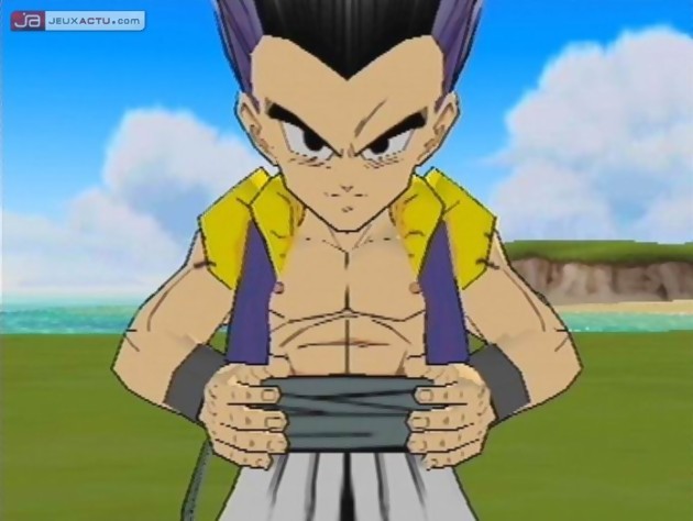 D’autres séquences de gameplay sont une esquisse de ce qu’on retrouve dans Dragon Ball Z : Budokai 3 où le joueur apportait sa contribution pendant une séquence de combat programmée en appuyant sur l’une des touches de la manette. D’autres phases de gameplay reproduisent à la perfection le dessin animé et l’ajout des fusions apporte plus de crédit à l’ambiance du titre. Trunks, Goten, Goku ou Vegeta peuvent déclencher la fusion après avoir réalisé un enchaînement de coups bien spécifiques. Le partenaire de circonstance de votre personnage apparaîtra alors à vos côtés et il ne tient qu’à vous d’appuyer sur les bons boutons au bon moment pour fusionner sans accroc. En cas d’échec, vous accoucherez d’un bâtard grotesque. Il faudra alors se battre dans ces conditions et autant vous dire que vous risquez de partir avec un handicap sérieux. Les environnements sont désormais interactifs et les effets de mise en scène qui accompagnent certains coups dynamisent efficacement les combats et l’animation n’est jamais prise en défaut. Les graphismes en cel-shading sont certes dépouillés mais ne trahissent en aucun cas le trait du mangaka japonais.