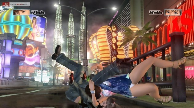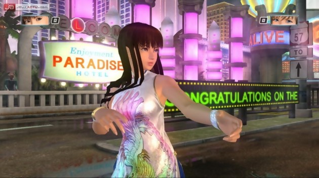 Considéré pour beaucoup comme une astuce de gamins, le système des contres dans Dead or Alive 4 poursuit le mouvement lancé par Dead or Alive Ultimate en limitant le côté aléatoire sinon trop facile de cet élément clef de la série. Le timing a été resserré afin de limiter les abus mais aussi empêcher le premier newbie venu de contrer toutes nos attaques. Les contres exigent donc une plus grande rigueur et de meilleurs réflexes pour espérer casser un enchaînement par exemple. Nul besoin de céder à la panique, l’exécution des contres se fait de la même manière qu’auparavant mais le rythme des combats désormais accéléré risque de déstabiliser les joueurs défensifs dans un premier temps. Pour dynamiser les matchs, Tomonobu Itagaki a également réduit considérablement les dimensions des arènes, ce qui empêchera les fuyards de prendre la poudre d’escampette histoire de souffler un peu après s’être mangé deux trois séries d’enchaînements au corps. Le jeu gagne ainsi en technicité et les pros des sticks arcade peuvent désormais s’en donner à cœur joie. Les effets de flou, longuement illustrés grâce aux palettes de screenshots diffusés sur le Net, accentuent de manière considérable l’impression de fluidité et de l’animation. A ce propos, Dead or Alive 4 tourne à 60 fps par seconde et pas un seul instant, la Xbox 360 ne vacille d’un cil. Un bel exploit qui mérite d’être applaudi par toute une salle en délire. Il est regrettable en revanche que certains enchaînements s’éternisent sur la durée et que la moindre chute – celle qui nous fait passer d’un tableau à un autre - nous bouffe autant d’énergie. Quoi de plus frustrant également que de voir son personnage être balayé par un vélocitéraptor ou une voiture pendant un enchaînement ou tout simplement lorsqu’il ne reste plus grand chose de la barre de santé. Certains trouveront l’interactivité de ces décors originales et bienvenues tandis que d’autres comme nous jugeront cet aspect facultatif car mal exploité et donc gênant à long terme.