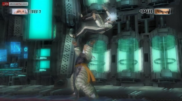Sans nous plus crier au génie, la palette de coups de la plupart des personnages a suffisamment évolué pour aller jeter un oeil dans la section "Entraînement". Il est vrai que les 150 mouvements que dispose chacun des combattants peuvent perturber certaines habitudes, notamment au niveau des enchaînements. A l’instar de Dead or Alive 3, pas moins de 16 personnages sont jouables d’entrée de jeu, parmi lesquels trois d’entre eux sont de nouveaux challengers. Elliot qui pratique le Xing Yi Quan est l’unique disciple de Gen-Fu - l’un des 6 personnages cachés – et allie force du lion et rapidité d’un singe. On découvre également pour la première fois Kokoro, jeune apprentie geisha, bien décidé à participer au tournoi et prouver à sa mère que sa technique du Ba Ji Quan mérite, elle aussi, de figurer parmi les arts martiaux les plus respectés. Quant à La Mariposa, on aura reconnu sous ce nom grotesque et son masque qu’il s’agit de la belle Lisa, qui pratique la Lucha libre, sport de combat à mi-chemin entre catch et capoeira. La présence également de Spartan 458 n’était donc pas un leurre et ce clin d’œil dirigé directement envers Microsoft sera accessible uniquement après avoir terminé le mode "Story" avec Helena, l’un des protagonistes les plus longs à obtenir puisque disponible seulement après avoir terminé le jeu avec l’ensemble des personnages. C’est d’ailleurs l’un des éléments intéressants du jeu pour tous ceux qui aiment les cinématiques bien faites sinon potaches. On passe légitimement de scènes de fin amusantes et caricaturales à des séquences d’une niaiserie totale, à faire passer les séries d’AB Productions pour des grands moments de télévision. C’est dire le niveau.