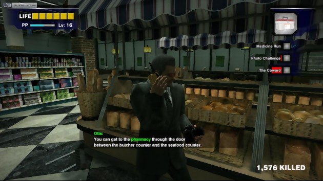Beat’em all par nature, Dead Rising emprunte néanmoins quelques ingrédients aux, permettant à notre héros photographe d’évoluer durant ces 72 heures de combat acharné. Franck peut ainsi débloquer des compétences qu’il n’avait pas au départ, comme ses techniques de combat au corps à corps qui lui permettront de se sortir de situations périlleuses. Des techniques qui défilent lors des nombreuses pages de chargement, un brin longuets, mais qui permettent d’avoir un aperçu rapide des différentes compétences à débloquer ou à échanger en fonction du nombre de points d’expérience acquis. Des Sims, Dead Rising a aussi emprunté le système de shopping. Souvent, pour passer le temps, il est possible de se rendre dans un magasin de fripes pour changer de tenue. Franck peut ainsi aussi bien enfiler une tenue pour enfant que faire le bellâtre habillé en costume trois pièces, avec une petite coupe fashion, que de se travestir des talons aiguilles aux pieds. Grisant tout comme ce second degré permanent qui permet au joueur averti de prendre du recul face à cette recrudescence de violence, pourtant nécessaire à la contribution du succès du jeu de Capcom. Un succès plutôt mitigé si l’on se met à évoquer la construction globale du jeu.