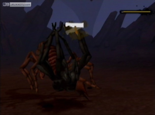 Et puisque nous parlons de gameplay, poursuivons. Outre quelques particularités liées aux capacités exclusives de l'une ou l'autre bestiole, les niveaux se déroulent de la même façon. On va d'un point A à un point B en se débarrassant des ennemis, qui vont du lézard à la veuve noire en passant par le serpent. Selon leur taille, ils sont plus ou moins faciles à faire trépasser : il faut parfois de nombreux coups et un brin de ruse. Quelques passages se déroulent en paysage ouvert, mais dans l'ensemble, la progression reste assez linéaire. Au début, on s'amuse beaucoup à se battre et grimper sur les murs, mais passée la surprise d'incarner des créatures aussi répugnantes et peu communes dans ce rôle-là, on commence à entrevoir le plus gros défaut du jeu : sa répétitivité. On a l'impression, en dépit de l'arrivée régulière de nouvelles capacités, de faire souvent la même chose. Si on admire le level design de certains passages, où l'on avance tantôt sur le sol, tantôt sur un mur, on ne peut s'empêcher d'imaginer qu'un gameplay moins linéaire aurait été tellement bien adapté à l'univers du jeu ! Dommage, mais cela reste tout de même sympathique. Autre grief : la jouabilité manque parfois de précision, la faute à une caméra qui perd parfois un peu la tête et empêche de viser juste. Rien de catastrophique toutefois. Enfin, les graphismes laissent perplexe : on peut difficilement trouver la réalisation soignée mais le jeu n'est pas laid non plus. La palette de couleurs, souvent sombre et triste, donne probablement cette impression de répétitivité visuelle. Bref, Deadly Creatures ne restera pas gravé dans nos mémoires, c'est certain.
