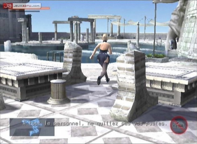 Signalons le geste de Sony qui nous offre une version PAL intégralement localisée en français. Pour les textes c’est toujours bon à prendre, en revanche une fois que les protagonistes se mettent à parler, on aurait finalement préféré se passer de leurs services. Entre les comédiens asthmatiques qui en font trop et ceux dopés au Valium qui n’en font pas assez, les voix françaises ne font pas honneur à notre beau pays. L’immersion dans cette ronflante histoire d’espionnage n’est donc pas acquise, Nina n’ayant elle même pas l’air fortement convaincue. Le navire où l’on a pu admirer Nina faire son show lors des images preview n’est heureusement pas le seul théâtre des opérations, et le jeu se divise finalement en plusieurs zones assez longues, avec, par exemple, un minimum de 4/5 heures uniquement pour boucler l’épisode du cargo. Namco, maîtrisant l’outil de synthèse depuis plus de dix ans, nous sert en entrée quelques séquences qui figurent dans le haut de gamme de ce qui se fait actuellement, avec des réalisations dues à la société Shirogumi Inc. Il en sera autrement pour la réalisation in-game, mais pour l’heure la mise en scène sexy autour du personnage de Nina suffit à retenir l’attention du joueur libidineux. Ses tenues de combat alterneront entre une robe de soirée très tardive, une combinaison bleue moulant l’arrière-train, sans oublier le bikini écarlate, et le tout "détériorable" à des endroits stratégiques au fur et à mesure des combats ! Alors Nina provocante ? Oui, mais à l’insu de son plein gré.
