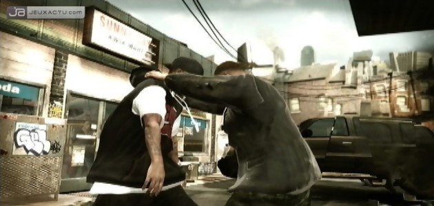 Vous l’aurez donc compris le mode "Monter un Label" mise avant tout sur les combats. Et là on approche du point sensible de Def Jam : Icon. Comme stipulé durant la campagne promotionnelle du jeu, Electronic Arts a joué gros sur le mélange baston de rue et musiques. Le résultat est aussi étrange qu’intéressant puisque les décors dans lesquels vous évoluerez bougent au rythme des basses de chaque morceau, différent d’un artiste à un autre. Par conséquent, les éléments présents dans l’arène se déforment petit à petit, se brisent au son des basses, explosent ici ou là. Cette interaction n’est pas là que pour nous émerveiller la rétine mais elle représente un véritable danger de tous les instants pour quiconque se retrouve balancer contre une pompe à essence, une bagnole, un hélicoptère, une gogo danseuse ou une cheminée. Danger pour l’un mais allier pour l’autre. Vous devrez donc tendre l’oreille afin d’attaquer au rythme de la musique et faire un maximum de dégâts. Mais si vous êtes du genre impatient, vous pouvez également différer le beat grâce aux platines DJ associées aux sticks analogiques gauche et droite. Le premier permet, en maintenant LT ou L2, de passer le morceau associé à votre rappeur. Ce changement de son permet à son combattant de booster la puissance et la rapidité de ses attaques. L’autre stick scratche la musique afin de déclencher simultanément les objets interactifs du décor. Une fois ces deux paramètres bien intégrés, il ne vous reste plus qu’à réduire en charpie votre adversaire.