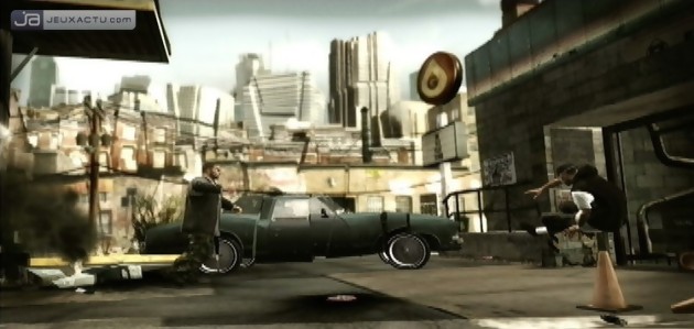 Vous l’aurez donc compris le mode "Monter un Label" mise avant tout sur les combats. Et là on approche du point sensible de Def Jam : Icon. Comme stipulé durant la campagne promotionnelle du jeu, Electronic Arts a joué gros sur le mélange baston de rue et musiques. Le résultat est aussi étrange qu’intéressant puisque les décors dans lesquels vous évoluerez bougent au rythme des basses de chaque morceau, différent d’un artiste à un autre. Par conséquent, les éléments présents dans l’arène se déforment petit à petit, se brisent au son des basses, explosent ici ou là. Cette interaction n’est pas là que pour nous émerveiller la rétine mais elle représente un véritable danger de tous les instants pour quiconque se retrouve balancer contre une pompe à essence, une bagnole, un hélicoptère, une gogo danseuse ou une cheminée. Danger pour l’un mais allier pour l’autre. Vous devrez donc tendre l’oreille afin d’attaquer au rythme de la musique et faire un maximum de dégâts. Mais si vous êtes du genre impatient, vous pouvez également différer le beat grâce aux platines DJ associées aux sticks analogiques gauche et droite. Le premier permet, en maintenant LT ou L2, de passer le morceau associé à votre rappeur. Ce changement de son permet à son combattant de booster la puissance et la rapidité de ses attaques. L’autre stick scratche la musique afin de déclencher simultanément les objets interactifs du décor. Une fois ces deux paramètres bien intégrés, il ne vous reste plus qu’à réduire en charpie votre adversaire.
