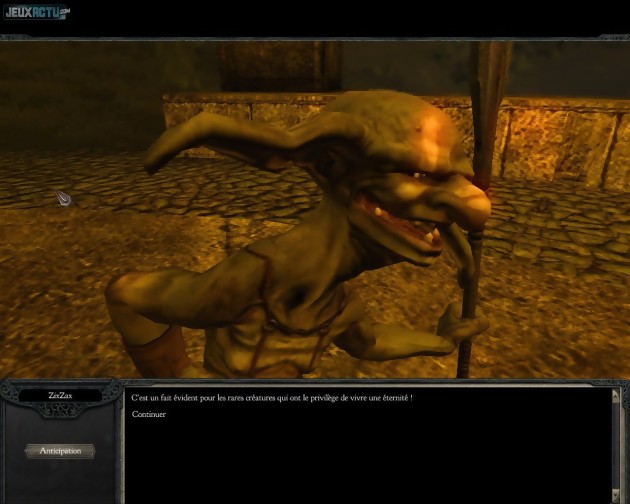 Le jeu ne se réfugie jamais derrière sa nature de RPG pour s'adonner à la facilité et au classicisme outrancier. Ainsi, le système de compétences permet de façonner un personnage véritablement multi-classes. Les voies du guerrier, du mage, de l'archer ou du prêtre invocateur ne nous sont en effet jamais imposées. La grosse cinquantaine de compétences disponibles n'est pas présentée sous la forme d'arborescences distinctes et figées, mais prend au contraire l'aspect d'un immense tableau dans lequel on peut dépenser ses points d'aptitude comme on l'entend. De quoi établir des stratégies d'évolution poussées, qui combinent efficacement les sorts des différentes classes. Quel que soit le développement de notre personnage, celui-ci bénéficie toujours du don d'anticipation, qui lui permet de lire dans les pensées d'autrui. Lors des séquences de dialogues, on peut donc effectuer des incursions téléphatiques afin de soutirer des informations plus ou moins importantes à certains PNJ. Parfait pour confondre un menteur, résoudre plus facilement une quête ou faire baisser les prix d'un marchand ! Afin d'éviter les abus, l'usage de cette capacité a évidemment un coût. Mais plutôt que de nous faire dépenser de manière irréaliste de l'or, les développeurs ont judicieusement choisi d'utiliser les points d'expérience en guise de ressource. Il faut donc peser soigneusement le pour et le contre avant d'user de l'anticipation, sous peine de ralentir la montée en niveau du héros. Autre fonctionnalité relativement inédite dans un jeu de rôle : la tour de guerre. Cette citadelle verticale, que l'on conquière au cours de l'aventure, décuple les possibilités du personnage et relance singulièrement l'intérêt du jeu, au moment même où d'autres RPG s'enfoncent irrémédiablement dans la répétitivité et l'ennui.