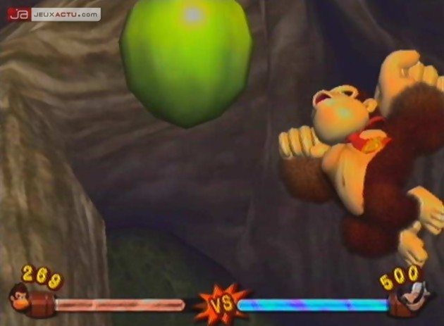 Mais qui donc est la vraie star chez Nintendo ? Mario ? Luigi ? Link ? Yoshi ? Eh bien, à y regarder de plus près, le grand bonhomme chez Nintendo ces derniers temps n’est autre que Donkey Kong, l’ennemi intime de Mario, bien avant que Bowser ne sorte de l’ombre. Héros à part entière, depuis un certain Donkey Kong Country sur Super Nintendo, Donkey était depuis catalogué au rang de "méchant" sur les différents titres multijoueur tels que Mario Kart, Mario Tennis ou encore Mario Golf. Depuis la sortie de Donkey Konga, il y a quelques mois sur GameCube, le grand singe est de nouveau en grâce et revient à ses premiers amours, la plate-forme.