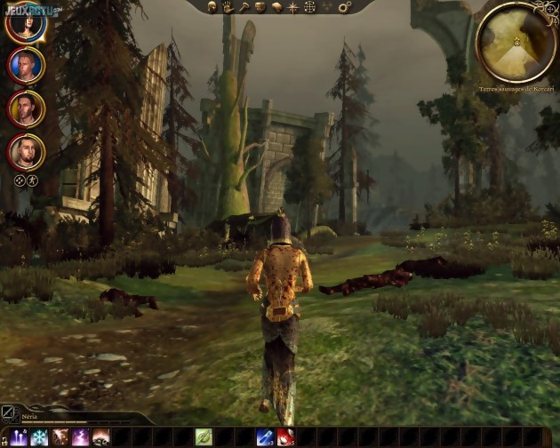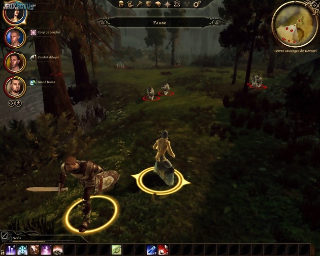 Le jeu utilise naturellement des graphismes 3D, affichés à travers une caméra à la troisième personne, que l'on peut dézoomer jusqu'à obtenir une vue aérienne, proche de celle des jeux de rôle d'antan en 2D isométrique. C'est cette dernière vue que l'on fera bien de retenir pour les combats, qui sont nombreux et toujours très tactiques. S'ils se déroulent par défaut en temps réel, et utilisent une barre de compétences héritée des MMORPG, on fera bien d'utiliser régulièrement la pause active. Très esthétique, celle-ci nous laisse jouer avec la caméra afin d'observer la scène sous son meilleur angle. Mais elle permet surtout de zapper d'un personnage à un autre, et de leur indiquer la manœuvre à effectuer dès la reprise des hostilités. Déplacements, lancement d'un sort sur une cible précise, direction et portée des sorts de zone, les adeptes du micro-management seront aux anges. Ceux qui préfèrent l'organisation à l'improvisation pourront quant à eux utiliser le menu de tactiques, grâce auquel on peut véritablement programmer le comportement des différents coéquipiers. Si "Ennemi:santé <50%" alors lancer sort "Etreinte de l'hiver". Si "PJ:cible d'une attaque à distance" alors "Activer:couverture au bouclier". Les ingénieurs informaticiens en herbe vont pouvoir s'en donner à cœur joie et obtenir l'équipe de leurs rêves. D'autant qu'on rencontre régulièrement de nouveaux volontaires, prêts à se joindre à notre épopée. Dans l'idéal, on essaiera d'avoir dans ses rangs un guerrier pour prendre et donner des coups, un guérisseur pour remettre sur pied tout le monde et un voleur pour pouvoir ouvrir les coffres cadenassés. Notre coup de coeur va tout de même au chien de guerre, plus fidèle que ne le sera jamais aucun bipède. Vous l'aurez compris, le jeu vaut essentiellement pour ses combats et ses dialogues. L'ambiance est également fort réussie, grâce notamment à la présence de nombreux écrits détaillant l'univers. Mais on peut tout de même reprocher au jeu de rappeler trop fortement les grands classiques de la littérature médiévale fantastique, notamment Le seigneur des anneaux. Preuve en est que les quêtes nous demandent de rallier elfes, humains et nains dans le même effort de guerre, les créatures de l'Engeance ayant remplacé celles de Sauron.