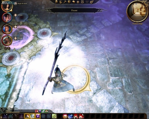 Le jeu utilise naturellement des graphismes 3D, affichés à travers une caméra à la troisième personne, que l'on peut dézoomer jusqu'à obtenir une vue aérienne, proche de celle des jeux de rôle d'antan en 2D isométrique. C'est cette dernière vue que l'on fera bien de retenir pour les combats, qui sont nombreux et toujours très tactiques. S'ils se déroulent par défaut en temps réel, et utilisent une barre de compétences héritée des MMORPG, on fera bien d'utiliser régulièrement la pause active. Très esthétique, celle-ci nous laisse jouer avec la caméra afin d'observer la scène sous son meilleur angle. Mais elle permet surtout de zapper d'un personnage à un autre, et de leur indiquer la manœuvre à effectuer dès la reprise des hostilités. Déplacements, lancement d'un sort sur une cible précise, direction et portée des sorts de zone, les adeptes du micro-management seront aux anges. Ceux qui préfèrent l'organisation à l'improvisation pourront quant à eux utiliser le menu de tactiques, grâce auquel on peut véritablement programmer le comportement des différents coéquipiers. Si "Ennemi:santé <50%" alors lancer sort "Etreinte de l'hiver". Si "PJ:cible d'une attaque à distance" alors "Activer:couverture au bouclier". Les ingénieurs informaticiens en herbe vont pouvoir s'en donner à cœur joie et obtenir l'équipe de leurs rêves. D'autant qu'on rencontre régulièrement de nouveaux volontaires, prêts à se joindre à notre épopée. Dans l'idéal, on essaiera d'avoir dans ses rangs un guerrier pour prendre et donner des coups, un guérisseur pour remettre sur pied tout le monde et un voleur pour pouvoir ouvrir les coffres cadenassés. Notre coup de coeur va tout de même au chien de guerre, plus fidèle que ne le sera jamais aucun bipède. Vous l'aurez compris, le jeu vaut essentiellement pour ses combats et ses dialogues. L'ambiance est également fort réussie, grâce notamment à la présence de nombreux écrits détaillant l'univers. Mais on peut tout de même reprocher au jeu de rappeler trop fortement les grands classiques de la littérature médiévale fantastique, notamment Le seigneur des anneaux. Preuve en est que les quêtes nous demandent de rallier elfes, humains et nains dans le même effort de guerre, les créatures de l'Engeance ayant remplacé celles de Sauron.