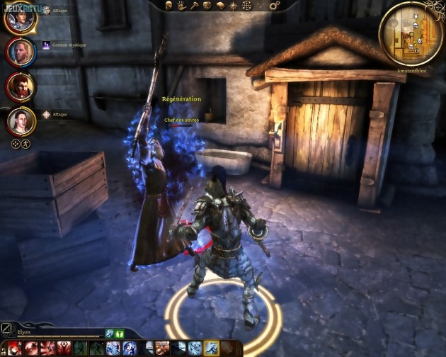 Avant de pouvoir découvrir les nouveaux évènements concoctés par l'équipe de BioWare, il faut choisir entre la création d'un personnage vierge ou l'importation d'un héros ayant déjà oeuvré dans Dragon Age : Origins. Dans le premier cas, le novice commencera sa carrière directement au niveau 18 et fera nécessairement partie des Gardes des Ombres. Sa tâche ne sera pas de tout repos car, la vie étant un perpétuel recommencement, le royaume de Férelden est à nouveau victime d'une invasion d'engeances et ce, malgré la chute de l'Archidémon. Les premières minutes de jeu donnent d'emblée le ton de l'aventure : combatif ! Notre premier acte de bravoure consiste à nettoyer le Fort Bastel, qu'on pensait pourtant pouvoir visiter tranquillement. Cette opération nous offre l'occasion de rencontrer et d'éliminer une engeance assez inhabituelle, puisque dotée de la parole. Cependant, n'espérez pas affronter énormément d'ennemis inédits. La plupart des adversaires sont directement issus du jeu original, et on passe beaucoup plus de temps à massacrer une nouvelle fois des Genlock, Hurlock et autres Ogres qu'à pousser des cris de surprise devant des créatures flambant neuves. Un dragon lumineux et un golem de feu resteront tout de même dans nos mémoires, mais ce n'est vraiment pas dans ce domaine qu'il faut attendre de la nouveauté. La gestion du Fort Bastel, notre nouveau campement de luxe, est nettement plus intéressante puisqu'elle incite à faire preuve de diplomatie envers nos sujets. Discuter avec eux déclenche des quêtes pas désagréables et nous oblige à prendre des décisions plus ou moins cruciales. Mieux encore, la salle commune héberge un véritable coffre de stockage ! Rappelons aux étourdis que cette fonctionnalité élémentaire n'était pas présente dans Dragon Age : Origins et qu'il fallait impérativement se procurer un DLC pour pouvoir en profiter. L'erreur est réparée, même si il faut une nouvelle fois ouvrir son portefeuille... D'ailleurs, ceux pour qui le rapport durée de vie/prix compte particulièrement doivent savoir qu'ils pourront faire le tour de la nouvelle aventure en une quinzaine d'heures. En effet, les combats tiennent plus de la balade de santé que du travail de longue haleine. La réutilisation de personnages de haut niveau et l'arrivée de 56 nouveaux sorts et talents nous rendent un peu trop puissants par rapport aux adversaires. Du coup, l'usage des créneaux tactiques et de la pause active devient quasiment superflu et l'extension lorgne nettement plus du côté de l'action que de la réflexion.