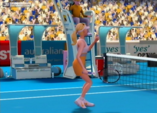 La frustration n’est donc pas totale puisque Grand Chelem Tennis possède d’autres qualités qui font de lui le jeu de tennis le plus convaincant sur Wii. Certes, la concurrence n’est pas très rude mais Electronic Arts a tout de même eu le bon goût de proposer une réalisation vraiment juste, à mi-chemin entre le rendu Mii et la modélisation réaliste des joueurs. Malgré un design assez caricatural, il est assez aisé de reconnaître les différents champions du tennis, actuels comme passés. On retrouve donc les principaux tels que Nadal, Federer, Murray, Hewitt, Tsonga côté hommes, mais aussi Williams, Henin, Ivanovic ou bien encore Sharapova chez les dames. Du côté des joueurs de légende, on note la présence de Pete Sampras, John McEnroe ou bien encore Martina Navratilova pour ne citer qu’eux. Si l’aspect cartonnesque du titre ne plaira pas à tout le monde, difficile de faire la fine bouche en ce qui concerne les animations. Electronic Arts a respecté les mouvements et autres mimiques de chaque joueur, si bien que le fanboy absolu pourra jubiler quant à l’idée de voir ses idoles se trémousser sur les courts centraux. Ces derniers possèdent leur titre officiel puisque Electronic Arts s’est payé les droits de licence pour que chaque tournoi du Grand Chelem soit reconnu dans le jeu. Open d’Australie, Roland Garros, Wimbledon et US Open, chacun de ces tournois proposent au minimum deux courts sur lesquels on va pouvoir échanger quelques balles.