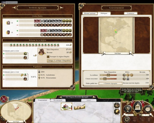 En matière de stratégie sur PC, il y a deux écoles : celle du tour par tour et celle du temps réel. Le principe fondateur des Total War étant de réunifier les deux tendances, ce nouvel épisode propose, comme ses prédécesseurs, un gameplay bicéphale, donc extrêmement riche. Pour introduire les différents concepts du jeu en douceur, les développeurs nous proposent une campagne intitulée "Route vers l'indépendance". Elle retrace la conquête de l'Amérique par les premiers colons installés en Virginie. Ce didacticiel géant et scénarisé débloque au fil des missions les nombreuses options du mode tour par tour, et propose des batailles en temps réel d'une difficulté croissante. Il s'agit donc d'un passage obligé pour pouvoir aborder avec sérénité la Grande Campagne, qui constitue le mode principal de cet Empire Total War. Une partie typique se déroule de 1700 à 1799, au rythme de deux tours de jeu par année, et nécessite de conquérir et conserver 35 régions pour sortir victorieux du périple. Sachant qu'il y a des dizaines d'actions à effectuer à chaque tour, que les batailles mettent parfois en scène plusieurs milliers d'hommes, que l'Amérique, l'Europe et l'Inde sont représentées, et que l'on peut recommencer à loisir cette Grande Campagne en choisissant une nouvelle nation de départ parmi les 11 proposées, nous sommes assurément en présence d'un titre chronophage, qui peut sans problème absorber plusieurs centaines d'heures de la vie d'un joueur.