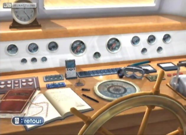 Endless Ocean ne se résume pas à une simple exploration des labyrinthes marins, mais prend également en considération la vie sur le bateau. En commençant par la cabine qui deviendra rapidement l'endroit où l'on passera la majeure partie de son temps à faire de la paperasse. Discrets au départ, les mails se feront de plus en plus nombreux par la suite, ce qui limite considérablement les temps morts. On aura différents types de missions à accomplir, comme initier un touriste à la plongée sous-marine par exemple, ou bien encore prendre des photos de poissons pour qu'un photographe puisse rédiger un dossier de presse. Mais le fil conducteur reste tout de même la découverte de nouvelles zones d'exploration, car c'est aussi l'objectif premier d'Endless Ocean, nous faire visiter tous les recoins de l'océan. On pourra prendre carrément le contrôle du bateau, ou plutôt indiquer sur la carte un point de chute pour s’y rendre. Le navire, c'est aussi un moyen de converser avec Catherine qui n'a pas sa langue dans la poche. Si elle n'hésitera pas à confier ses états d'âme, elle lâchera aussi quelques informations nécessaires pour continuer à progresser dans le jeu. Malheureusement, cela contribue à la facilité d’Endless Ocean qui a du mal à donner du fil à retordre. Le titre n'est pas un brise-méninges, mais plutôt un concentré de défis à relever sans aucune sanction en cas de raté. Sur le ponton du bateau, on peut aussi passer son temps à dresser ses compagnons de route, un dauphin pour commencer. Il s'agit en fait de les entraîner à faire des tricks - salto avant ou arrière, marcher sur l'eau, saut en hauteur... - en donnant des instructions à l'aide de la Wiimote. A vrai dire, le mécanisme n'est pas très claire, et il n'est pas rare que certaines figures s'exécutent au hasard. Endless Ocean ne tourne pas en haute-définition, certes, mais il réserve tout de même quelques endroits féériques qui méritent le détour. Par ailleurs, on appréciera l'effort qui a été fait sur la modélisation des animaux aquatiques, plus particulièrement les cachalots, les raies ou bien encore les lamantins. Même si l'environnement sous-marin affiche parfois des zones vides, le plaisir de passer un moment calme plusieurs mètres sous l’eau atténue la frustration. Pour finir, notons l’excellent travail réalisé sur l’ambiance sonore du jeu. Les plus réfractaires pourront tout de même changer la playlist via des fichiers MP3 que l'on importe avec une carte SD. Bien vu.
