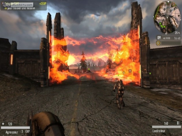 Loin d'être un Risk en vue subjective, Enemy Territory : Quake Wars emprunte toutefois au célèbre jeu de plateau son concept de conquête territoriale. Les cartes réparties en différents points du globe (Europe du Nord, Amérique du Nord, Afrique et Océanie, Splash Damage gardant sous le coude quelques continents en vue de futures mises à jour) sont découpées en zones. En chassant votre adversaire de l'une d'elle, vous pourrez y déployer vos équipements d'assaut et de défense – et notamment une belle brochette de tourelles solides et efficaces – et y ressusciterez après chacune de vos disparitions. Votre mission principale consistant souvent à détruire, ou à défendre coûte que coûte, un équipement spécial, cette progression dans l'espace vous permet de mettre davantage la pression sur l'adversaire et de rallier les points-clés plus rapidement, que ce soit à pied ou à bord de l'un des nombreux véhicules du jeu. Moins bien gérés que dans un Unreal Tournament ou dans un Halo, avec des contrôles peu convaincants et une physique pas toujours au top, ces engins vous permettent toutefois de chouettes virées en groupes et raccourcissent considérablement votre parcours vers la mort. Une proximité permanente avec le feu qui facilite la chasse à l'XP. La progression du personnage est en effet au coeur du titre des développeurs anglais. Chaque mission, chaque frag, chaque action bénéfique à votre camp vous rapporte une poignées de points qui, additionnés, vont vous permettre de montrer en grade. De simple soldat, vous progressez peu à peu dans la hiérarchie, déverrouillant au passage des features bien utiles, du module supplémentaire pour votre arme à des améliorations de vos aptitudes physiques. Autant dire que la chasse au bonus risque de vous occuper un bon bout de temps.