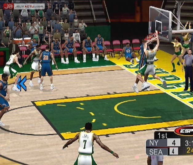 Titre très attendu, ESPN NBA 2K5 nous a livré tous ses secrets et répond parfaitement à nos attentes. Complet, beau, jouissif et long, il s’agit tout simplement d’une bombe ! Mais commençons par le commencement. Très orienté vers la simulation, le soft permet de développer une vraie stratégie de jeu afin que chaque situation colle le plus possible à la réalité. Exit donc les alley-oops spectaculaires et autres dunks monstrueux à tout bout de champs. Les mouvements sont donc très réalistes - notamment les pas latéraux - et la dynamique de l’action est assurée par la possibilité de changer de mouvement en pleine course ou encore se rencarder sur la position du ballon après un rebond grâce à la présence d’un indicateur au sol. Lors des matchs, on peut facilement identifier une petite icône au-dessus de chaque joueur représentant son poste sur le terrain : défenseur, spécialiste des 3 points, etc. Dans cette optique, impossible de perdre inutilement son temps à réfléchir sur le rôle de chacun - qui obligé à mémoriser le nom et la corpulence de tous les membres de l’équipe - mais en sus, il est possible de donner très rapidement des directives à vos joueurs en pleine partie.