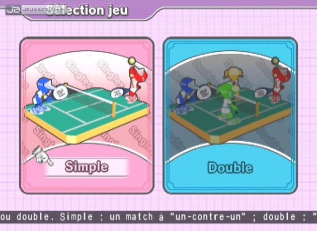 Quoiqu’il en soit, Everybody's Tennis déçoit également du côté des modes de jeux un peu faméliques il faut bien l’avouer et seuls les fayots du premier rang lui pardonneront ce manque de variété. Le mode "Challenge", équivalant au mode "Carrière", nous oblige à remporter un certain nombre de matchs avant de pouvoir passer au palier suivant. Pas de mini-jeux pour tuer le temps entre deux rencontres, juste la possibilité de débloquer de nouveaux personnages (14 au total) et des tenues vestimentaires en plus. A cela s’ajoute un mode "Entraînement" où le but consiste à rester sur le court le plus longtemps possible en renvoyant les balles et un mode Tennis pour tous, permettant de réaliser des matchs en simple ou en double. Bref, rien de bien folichon à se mettre sous la dent, sans oublier que le jeu ne propose même pas de mode en ligne. Cela dit, Everybody's Tennis reste néanmoins un jeu de tennis sympathique, qui cherche avant tout à rassembler un maximum de personnes. Encore faut-il apprécier les ambiances mièvres et cul-cul la praline nipponnes…