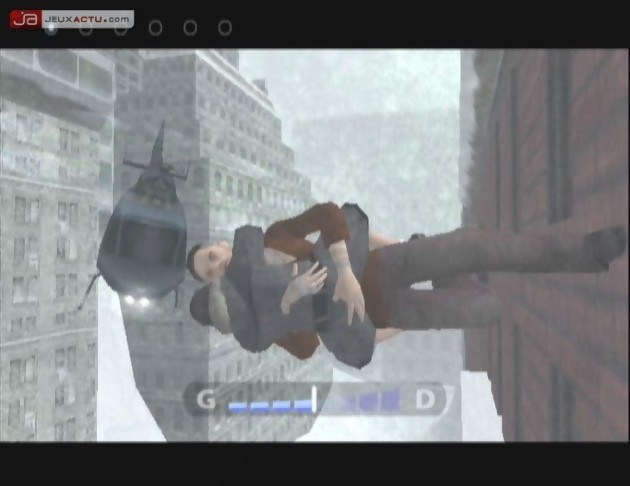 Au delà de sa mise en scène, Fahrenheit surprend aussi par son gameplay. Loin des sacs sans fond des inventaires habituellement accordés aux jeux d’aventure, des survols de pointeur en cherchant une ultime action à accomplir, le jeu se veut immersif jusqu’au bout et il faudra reproduire à la souris ou au stick analogique les mouvements du protagoniste du moment. Les boutons de la manette ne sont alors plus qu’artifices et pousser une porte, passer le balai ou encore ouvrir un placard se fera désormais par une simple pression dans la bonne direction. Les dialogues ont également opté pour un déroulement inhabituel et se déroulent en temps réel, vous obligeant à prendre une décision vite, sous peine de voir la rencontre s’abréger et de précieux indices partir avec elle. Mais l’immersion ne s’arrête pas là et comme pour tout film, le jeu a aussi droit à son lot d’action. Courses poursuites et combats animent alors l’histoire et dès le tutorial, on nous annonce la couleur : il faut ressentir la fatigue physique du personnage. Non sans rappeler les QTE (Quick Time Events) de Shenmue, Fahrenheit nous demande alors de reproduire à l’aide des deux sticks analogiques sur console, ou du couple clavier/souris sur PC, des séquences s’affichant sur l’écran. De plus en plus longues et surtout de plus en plus rapides, on se prend vite au jeu et il faut avouer que certains passages sont surprenants tant on se met dans la peau des protagonistes, jusqu’à ressentir leur stress par le nombre d’opérations à accomplir et la vitesse à laquelle il faut s’exécuter. Ces PAR (Physically Action Reaction), comme les nomme David Cage, restent toutefois moins éprouvants que les épreuves utilisant les gâchettes (ou les touches correspondantes) pour tester votre endurance. A la manière d’un Track’n’Field il faudra en effet marteler en rythme pour rester accrocher à un rebord au dessus du vide, pour forcer une vitre ou encore pour nager au fond d’un lac gelé. Malheureusement, aussi excellent soit-il, ce gameplay sera vite surexploité jusqu’à ne plus conduire qu’à une succession de phases d’action laissant trop souvent de côté la véritable histoire du jeu, et nous précipitant sur une fin trop vite amenée.