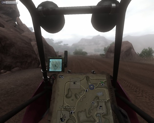 Licence Far Cry oblige, nous n'avons pas affaire à un FPS couloir mais à un monde réellement ouvert, qui laisse le joueur totalement libre de se déplacer à sa guise. La zone se parcoure sans aucun chargement, à l'exception de la frontière séparant le district nord du sud. Si quelques montagnes bien placées viennent parfois tempérer les velléités du joueur baroudeur, la sensation de liberté reste extrêmement appréciable. Il existe plusieurs chemins pour rejoindre la majorité des objectifs, et le choix du moyen de transport vous appartient totalement. A pied ou en buggy, en jeep ou en hors-bord, c'est vous qui voyez ! Pour cela, vous pourrez réquisitionner n'importe quel véhicule abandonné au bord du chemin, ou bien employer la manière forte et abattre le conducteur du bien convoité au terme d'un gunfight improvisé. De quoi faire passer le car jacking des GTA pour un loisir d'enfant de chœur... Mais ce que Far Cry 2 gagne en liberté, il le perd en intensité. Ainsi, le jeu n'évite pas l'écueil majeur de la plupart des mondes ouverts : la répétitivité et la monotonie des trajets. Les développeurs ont beau avoir doté tous les véhicules d'un GPS dernier cri et multiplié les valises de diamants cachées dans le décor, il faut bien se rendre à l'évidence : devoir se rendre à l'autre bout de la carte pour effectuer la moindre mission devient assez rapidement fastidieux. Un état de fait aggravé par le manque de variété des objectifs, l'impossibilité d'empiler les quêtes (il faut donc sans cesse faire des allers retours au centre ville) et la réapparition trop rapide des soldats équipant les points de contrôle routiers. Avertissement : tuer deux fois les mêmes gardes en l'espace de cinq minutes nuit gravement à la crédibilité.