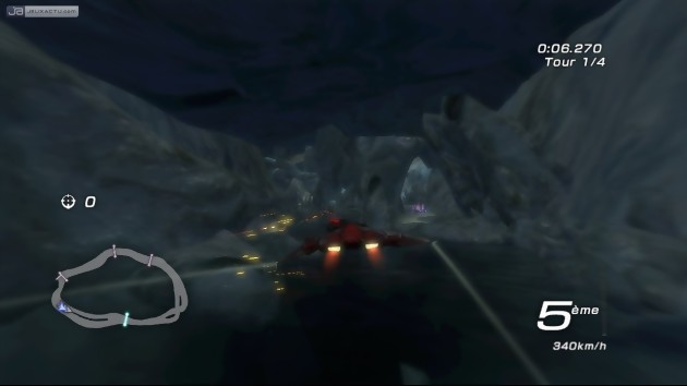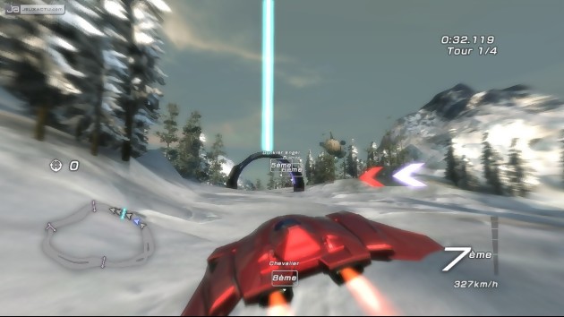 Autre subtilité de Fatal Inertia : les départs-canon. Juste avant l’extinction des feux, il faut maintenir A et X appuyés. A droite de l’écran, on aperçoit alors une jauge qui mesure la surchauffe des réacteurs. Le but du jeu est de relâcher les boutons avant que le niveau n'atteigne la zone rouge, sinon c’est l’explosion assurée. Il faut donc appuyer suffisamment tôt pour que la jauge parvienne à un niveau de boost satisfaisant, mais faire également attention au décompte. La même manipulation peut être réalisée en pleine course pour s’offrir un turbo, mais l’effet est ridicule. En fait, la machine perd de la vitesse, comme pour faire un départ arrêté. Chapeau. Il aurait sans doute été préférable d'intégrer des turbos tout le long du circuit; une méthode vieille comme le monde mais qui a fait ses preuves. L’occasion de souligner le design désastreux des circuits qui manquent cruellement de gueule. Certaines pistes se la jouent même NASCAR avec des circuits ovales sans intérêt. Certains passages demandent de la dextérité, mais on regrette qu’il n’y ait pas LES circuits techniques que l’on doit refaire à plusieurs reprises avant d’accéder à la manche suivante. L'arsenal de Fatal Inertia se compose d’une dizaine d'armes environ, qui se divisent en quatre catégories. La première concerne les Aimants, dont l'objectif premier est d’affecter le centre de gravité de l’adversaire. Dans la deuxième catégorie, on retrouve la Fusée, le Fumigène et l'Explosion. En utilisation standard, la Fusée permet de tirer sur un ennemi, alors qu'en mode secondaire elle active un turbo de qualité moyenne. L'Explosion est aussi une arme intéressante, car elle dispose d'un effet de blast suffisamment puissant pour repousser tous les autres adversaires qui se situent aux alentours. Par ailleurs, son blast peut également servir de turbo. Dans la troisième catégorie sont rassemblés les items qui offrent plus ou moins une protection par rapport aux adversaires. On pense notamment à l'EMP qui neutralise toutes les armes éléctromagnétiques des environ, ou bien à la dilatation temporelle qui ralentit tous les concurrents. Enfin, la quatrième et dernière catégorie contient le câble, un accessoire pas évident à maîtriser mais bougrement efficace pour s’accrocher aux carlingues.