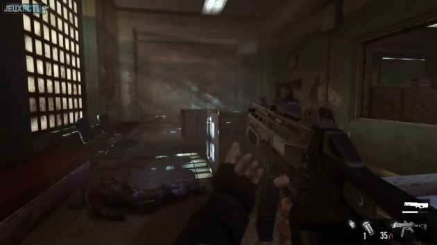 Ce gameplay bipolaire offre une bonne rejouabilité à la campagne solo, qu'on pourra parcourir jusqu'à trois fois sans trop se lasser (une fois avec le Point Man, une fois avec Paxton Fettel, une fois en coop). On ne la blâmera donc pas pour sa durée de vie initiale un peu légère. Il faut en effet compter environ sept heures pour en faire le tour, ce qui constitue hélas la moyenne du genre de nos jours. Durant ce laps de temps, on profite d'un système de couverture tellement bien pensé qu'il ferait presque oublier l'absence de lean. Mais n'allez pas croire que le fait de se mettre à l'abri soit gage d'une sécurité totale ! L'intelligence artificielle, qui a plus d'un tour dans son sac, n'hésitera pas à vous contourner et à venir vous déloger. Les commentaires des ennemis donnent de précieuses indications sur leurs décisions, et le tout forme une ambiance crédible. Puisque l'on parle d'ambiance, signalons que FEAR 3 mise plus sur l'action que sur l'épouvante. On a bien droit ici ou là à quelques hallucinations sanguinolentes ou à quelques apparitions impromptues d'Alma, mais on sursaute rarement. Symbole parfait de ce changement d'orientation : un système de score fait son apparition. En réalisant certaines actions (25 tirs en pleine tête, 30 ramassages de munitions, 60 secondes passées au ralenti ou en possession d'un ennemi...) on obtient des points de défis. A la manière d'une barre d'expérience, le score qui en résulte débloque régulièrement quelques améliorations (durée du ralenti, nombre de chargeurs par arme, régénération de santé...). En coop, le résultat des défis décide même de la fin du jeu, qui change donc selon qui de Paxton ou du Point Man a réalisé les meilleures performances. C'est fun, motivant, mais cela peut aussi nuire à l'immersion pour certains joueurs. Tout le monde devrait en revanche s'accorder sur la bonne puissance des armes (notamment le fusil à pompe bien dynamique) et la qualité des graphismes, à la hauteur des exigences modernes.
