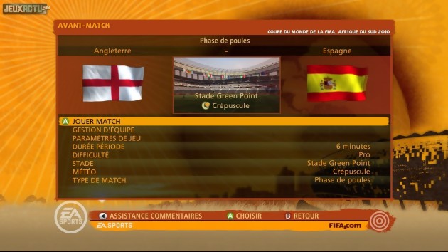 Si le football peut visiblement déboucher sur des histoires de fesses et de strings, Electronic Arts tente quand même de se focaliser sur l'essentiel avec Coupe du Monde de la FIFA : Afrique du Sud 2010, à savoir la grande compétition éponyme qui se déroulera du 11 juin au 11 juillet prochains en Afrique du Sud. Avec FIFA 10 en guise de canevas, l'éditeur s'assure un fonds de jeu solide et donne l'impression de ne proposer qu'une simple modification de l'habillage ; ce qui n'est pas totalement faux. Mais au bout de plusieurs parties, on se rend compte que Coupe du Monde de la FIFA : Afrique du Sud 2010 fait également office de laboratoire pour le prochain FIFA 11 en termes de gameplay. Et là, naturellement, ça devient beaucoup plus intéressant.