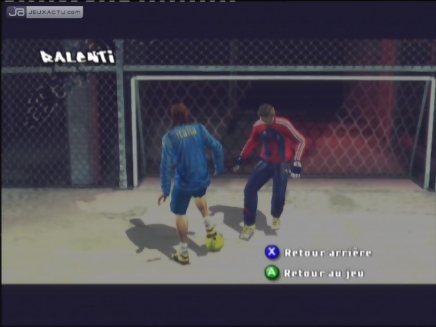 Beaucoup plus techniques et donc moins aléatoires qu’au premier épisode, les matchs de ce FIFA Street 2 demanderont de construire un minimum son jeu pour faire trembler les filets adverses et, si l’attaque demandera style et stratégie, la défense demandera quant à elle force et réflexes. Jouant des coudes pour ralentir vos opposants dans leur course au but, vous allez en effet surtout pouvoir parer leurs feintes pour récupérer le ballon dans des duels en un contre un. Se décidant entièrement au stick analogique, les contres agressifs et les blocages de figures demandent alors un timing précis pour garder son honneur et, rater une occasion conduit souvent à se voire ridiculiser plus qu’initialement prévu. En contre partie, vous pourrez largement en faire de même pour démoraliser vos potes lors de matchs multijoueurs en faisant passer le ballon par-dessus leur tête avant de les achever pas une bicyclette surpuissante, et les plus audacieux se risqueront même aux quelques jongles appris dans les défis techniques pour faire grimper leur compteur de combo et augmenter ainsi leur force de frappe.