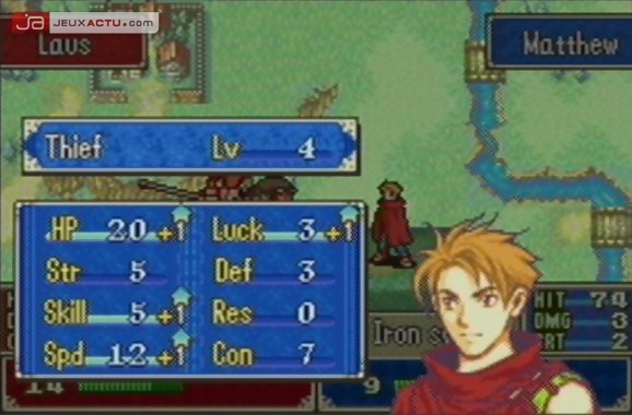 C’est donc maintenant qu’on se lâche dans les superlatifs : Fire Emblem est génial, il possède une richesse de jeu impressionnante (qui égale en fait Final Fantasy Tactics), et des graphismes super trognon comme dans Advance Wars. A chaque combat, on a droit à une jolie petite animation qui vous montrera plus en détails à quoi ressemblent vos combattants, et certains d’entre eux ont vraiment la classe ultime. On retiendra surtout les magies, superbes, Lyn et son épée Mani Katti qui fait des ravages, les cavaliers, les pégases, tout est vraiment bien animé et joliment dessiné. De la belle 2D comme en voit plus que sur GBA.