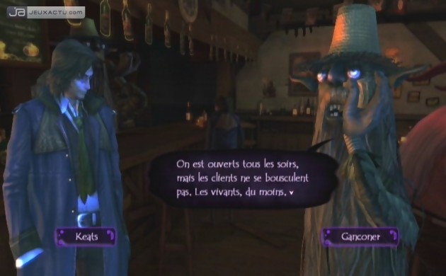 Dis comme ça, le titre de Game Republic semble avoir suffisamment d’atouts dans sa manche pour convenir au plus grand nombre, ce qui n’est malheureusement pas le cas. Pour commencer, le style narratif ne plaira pas à tout le monde ici. Plutôt que de miser sur une avalanche de cinématiques et de cut-scenes comme la majorité des productions actuelles, Folklore se permet de reléguer ces élans de modernité au second plan, et prône un retour à une mise en scène plus décousue. Ici, tout se passe dans des simili-BD assez rythmées pour ne pas endormir les allergiques de la lecture. Si ce choix rétrograde au résultat quelque peu statique ne fait qu’affirmer la personnalité de cette production hors-norme, il n’est pas sûr que les amateurs de grand spectacle apprécient un tel choix. Vous voilà prévenu. L’autre grand point noir de Folklore se situe dans son game design qui laissera par contre une majorité de joueurs dubitatifs. Si l’idée d’être aux commandes d’un binôme n’a en soi rien de bien originale, le découpage de l’aventure l’est par contre beaucoup plus. Ici, plutôt que d’engloutir d’une traite l’aventure avec un seul personnage, puis de confronter le point de vue obtenu en finissant le jeu une seconde fois avec l’autre héros, il nous est proposé de vivre l’enquête alternativement, de vivre les mêmes évènements d’un point de vue différent donc. L’idée pouvait sembler ingénieuse, mais elle ne l’est, hélas, pas tout à fait. Car qui dit revivre les mêmes événements, dit également rejouer les mêmes phases de jeu, ce qui, vous me l’accorderez, n’a rien de bien excitant. Il y a bien cette possibilité qui voudrait que l’on enchaîne quelques chapitres avec Ellen, puis qu’on les refasse avec Keats pour casser l’effet d’immédiateté de cette répétition, mais cette option brise malheureusement tout le concept de point de vue alternatif, d’autant plus que le gameplay de nos deux héros est parfaitement identique. Dommage. Toujours au chapitre des reproches, on pourra toujours souligner un level design parfois peu inspiré, ou une mécanique de jeu quelque peu redondante, mais soyons sûr que les joueurs ayant cédés à cet appel au fantastique et au dépaysement n’en auront cure.