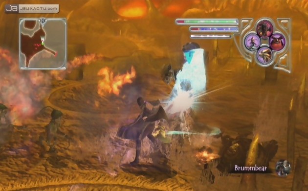 Le bestiaire n’est évidemment pas en reste, puisqu’il est particulièrement conséquent et se taille une place de choix dans le gameplay de Folklore. En effet, une fois plongé dans le Netherworld, Ellen et Keats se découvrent des capacités mystiques les rendant capables d’absorber l’âme mourante de leurs ennemis. Ces ennemis, les folks, permettent en fait à nos deux héros de se défendre dans ce monde hostile. Une fois absorbées, ces âmes, qu’il faudra attribuer à chacune des touches principales de la manette, seront invocables et vous feront bénéficier de leurs attributs. Attaque de proximité, attaque verticale, attaque à distance, protection, effets élémentaires etc. La panoplie est large, à condition de se donner la peine de rechercher ces folks et de les affaiblir avec les bonnes attaques. En effet, certains monstres ont une âme qui n’est vulnérable que face à un type d’attaque, ce qui signifie qu’il faut trouver le bon folks pour les affaiblir et ne pas les détruire en même temps que leur enveloppe corporelle. Heureusement, vous n’aurez pas à expérimenter chacun des folks capturer sur les nouveaux rencontrés ; un album dont les pages sont éparpillées dans le jeu vous donnera les informations nécessaires à leur affaiblissement. A noter que la capture des âmes se fait par un bref mouvement du Sixaxis, sympa mais sans plus. Au-delà de leurs capacités offensives et défensives, les bestioles seront également nécessaires pour avancer dans le jeu. Des barrières se dresseront régulièrement sur votre route, et qu’il faudra détruire grâce à la bonne attaque. Le concept de Folklore est en lui-même très intéressant, cependant, il est assez répétitif, la faute à une action un peu trop présente. Et si le titre se définit comme un Action-RPG, préparez-vous à oublier cette seconde partie, tant on passe son temps à déglinguer de la créature irlandaise. Ces phases ne sont d’ailleurs pas vraiment agréables, la faute à une caméra qui peine à suivre convenablement l’action. Dommage.