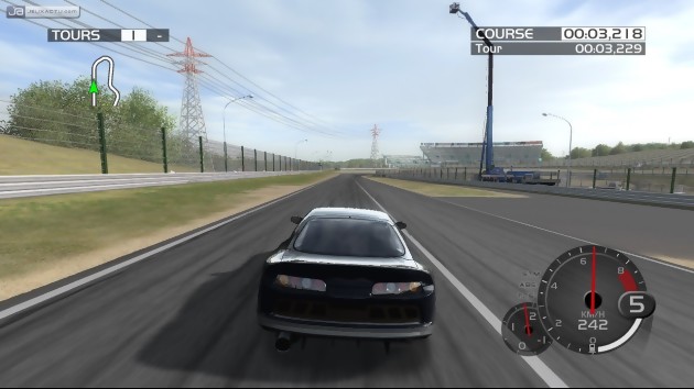 Parlons-en de la réalisation. On se régale tout de même et c’est d’autant plus vrai si l’on possède un téléviseur HD. Bien que modélisé avec extrêmement de soin, le contour des véhicules souffrent malheureusement d’aliasing, c'est vrai. En revanche, le jeu des lumières flatte la rétine et le paysage se reflète en temps réel sur la carrosserie. La gestion des dégâts a été améliorée, la peinture s’ébrèche, les vitres se brisent, la carrosserie se déforme au gré des chocs... Et même si le tout paraît un peu exagéré, on apprécie quand même ce genre de petits détails. La conduite s’en ressent avec notamment des accélérations moins performantes ou des problèmes de direction et le rendu se veut très proche de la réalité. Cela dit, s’il est possible de mettre son véhicule dans un sale état, il n’est pas non plus entièrement destructible et on n’a donc pas non plus l’impression qu’il sort d’un accident réellement meurtrier. D’autres incohérences se sont glissées ici et là mais on n’en tiendra pas vraiment rigueur. Par exemple, foncer dans un mur à grande vitesse n’occasionnera pas beaucoup plus qu’avec une centaine de kilomètres/heure en moins au compteur. Quoi qu’il en soit, on a tendance à faire attention voire surprotéger son bolide et à moins de le faire exprès ou d’être complètement polio, il faut vraiment jouer beaucoup pour ne pas passer assez à côté de ces désagréments. En effet, les réparations sont onéreuses et directement déduites des gains de la course. Cerise sur le cake, l’interface bien pensée permet de localiser plus précisément les dégâts subis, de vérifier l’état de la pneumatique et d’avoir accès à des données télémétriques. Le nombre de vues proposées est curieusement limitée : seulement quatre dont les deux extérieures n’offrent pas vraiment de différences entre elles.