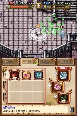 Ne faisons pas durer le suspense plus longtemps, From The Abyss rentre malheureusement dans cette deuxième catégorie, malgré tout le mal qu'il se donne. Composé d'une ville principale, point de départ de toutes vos quêtes, et d'un monde diabolique accessible par un portail dimensionnel, From The Abyss est l'archétype du Dungeon-RPG classique. Dans les "rues" de la cité en proie à des influences démoniaques vous trouverez tout ce dont un explorateur a besoin. Une auberge pour sauvegarder, une boutique pour acheter armes et potions, une place publique pour entendre des PNJ se plaindre et un centre d'informations pour vous former aux bases du combat en milieu hostile. Bien entendu, point de visite. Vous jonglerez seulement entre des icônes et des menus rendant l'expérience particulièrement glaciale. Un manque de chaleur d'autant plus dommageable que la réalisation en 2D - agréablement old school - apporte une touche sympathique et attachante qui aurait mérité d'être creusée. Certes les animations très pauvres du héros et des créatures tentant de freiner sa croisade pour le bien font preuve d'un manque de fluidité flagrant, mais le design général reste réellement attractif, exception faite des artworks représentant les personnages principaux de la ville-racine, tout droit sortis de RPG-Maker. Les boss sont quant à eux mis à l'honneur par le biais de larges sprites bien détaillés rappelant une nouvelle fois l'âme toujours plus actuelle des jeux de l'ère 16-bits. Mais From The Abyss semble assez peu capable de conserver une aura positive trop longtemps. Les affrontements contre ces mêmes gardiens de donjons qui se montrent relativement prenants durant les premières heures de jeu, bénéficiant d'un vrai challenge et demandant une petite période d'observation, se laissent absorber par une courbe de difficulté étrange. Une fois le cap des trois premières heures dépassé, grâce à un équipement performant aisément acquis et un leveling plutôt rapide si l'on prend le temps de bien fouiller chaque recoin des donjons, le titre devient une balade gentillette durant laquelle les ennemis ne résistent pas plus de 4 secondes face à vos coups répétés. La difficulté à outrance n'est évidemment  pas une solution, mais devant un tel manque de challenge ludique l'envie de progresser se trouve totalement dissipée au profit d'un véritable ennui. L'absence d'un scénario digne de ce nom se fait de fait cruellement sentir, tant il aurait pu aider à soutenir l'attention du joueur, perdu dans une interface peu intuitive et dans un gameplay presque sans ambitions. Car malgré le matraquage du bouton "A" durant des heures, From The Abyss propose un très intéressant principe de capture d'âme, rappelant un tantinet ce que l'on a pu voir récemment dans Castlevania : Order Of Ecclesia.